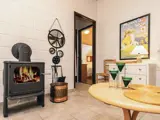 Fernsehwohnzimmer mit Holzofen. WLAN und Chromecast vorhanden.