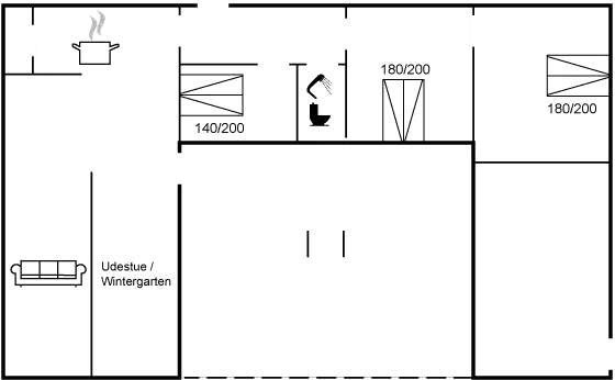 1 Smart-TV. Fernsehen via Streaming. 1-3 dänische Fernsehsender. 1-3 deutsche Fernsehsender. Es steht kabellose Internetverbindung zur Verfügung.