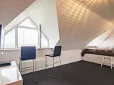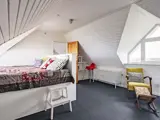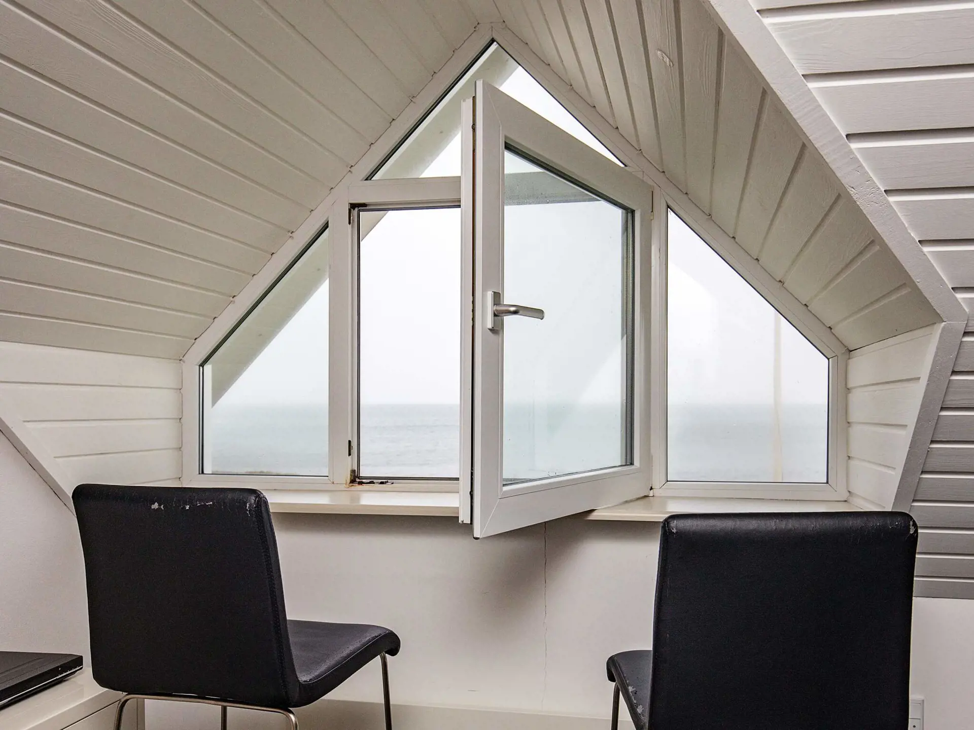 Es gibt drei Schlafzimmer im Haus, zwei davon liegen in der oberen Etage. Zudem steht ein Doppelbett oben auf dem Treppenabsatz, der als Durchgang zu den beiden Schlafzimmern dient. Schöner Ausblick zum Fjord von oben.