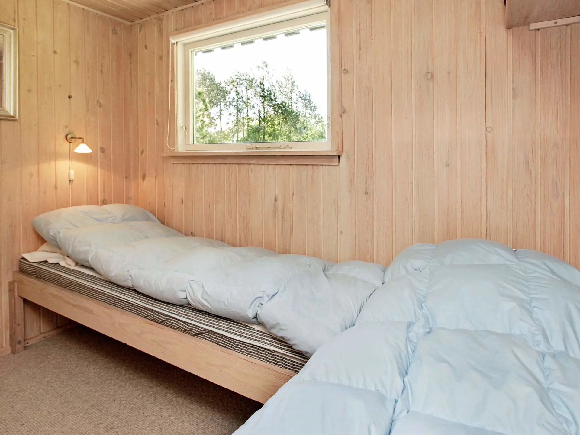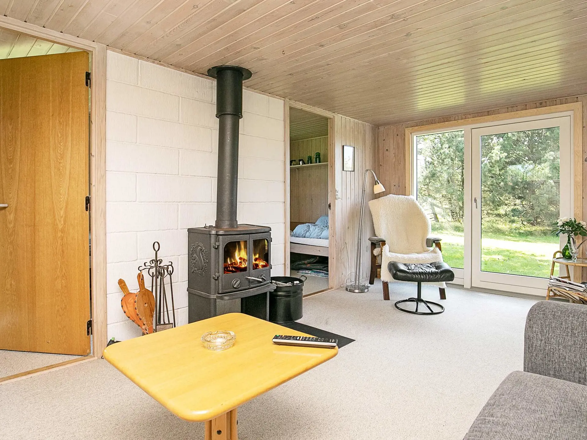 Ferienhaus auf einem großen Naturgrundstück, nur ca. 300 Meter vom Limfjord entfernt. Das Haus verfügt über einen geräumigen Eingangsbereich, von dem aus man in den Wohnbereich gelangt, ein kombiniertes Wohnzimmer und eine Küche mit Fernseher und Holzofen. In der Küche gibt es einen Cerankochfeld und einen Kühlschrank mit separatem Gefrierfach. Das Haus verfügt über zwei schöne Schlafzimmer, eines mit Doppelbett und das andere mit drei Einzelbetten. Außerdem gibt es ein schönes Badezimmer mit Duschkabine. Das Haus hat auf beiden Seiten Terrassen, sodass man den ganzen Tag die Sonne genießen und zu Abend essen kann, während die Sonne im Westen untergeht. Ein wirklich gemütliches Haus für einen schönen Urlaub.