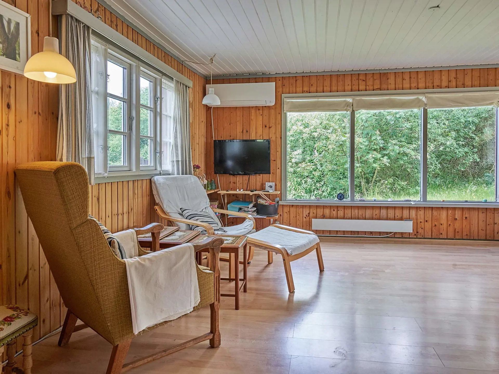 Das Haus ist mit Holzwänden und -decken ausgestattet. Vom Esszimmer/Wohnzimmer gibt es einen direkten Zugang zur überdachten/offenen Terrasse. Das Wohnzimmer ist mit Möbeln von guter dänischer Qualität eingerichtet. TV mit Chromecast für das Streaming Ihrer eigenen Dienste. Gute Essecke für alle Urlauber. Heller Küchenbereich mit Cerankochfeld, Kühl-/Gefrierschrank und neuer Spülmaschine. Zwei geräumige Schlafzimmer, beide mit Doppelbetten und ein neu renoviertes Bad mit Dusche. Es gibt auch ein Doppelbett auf einem Schlafsofa im Wohnzimmer.