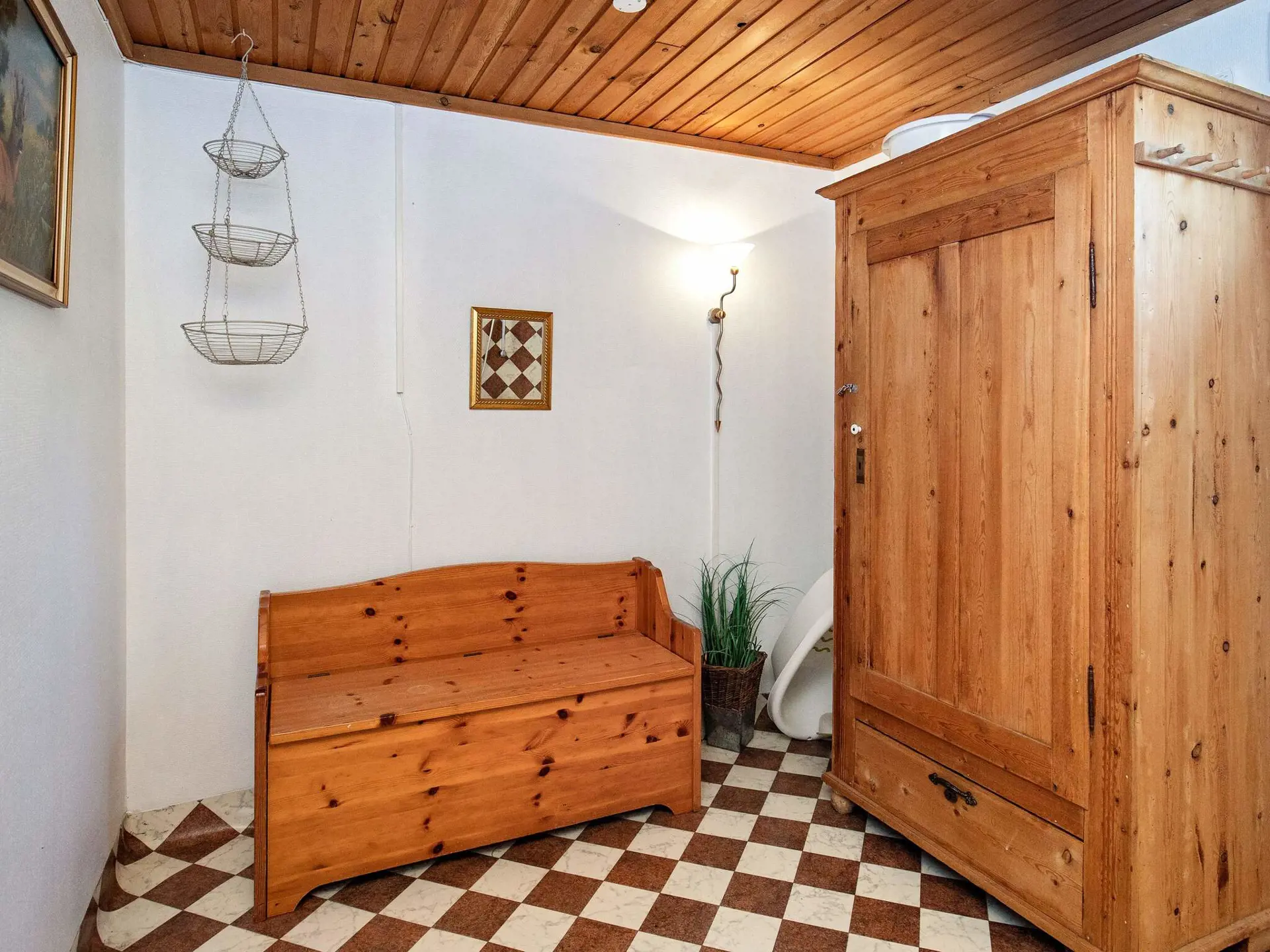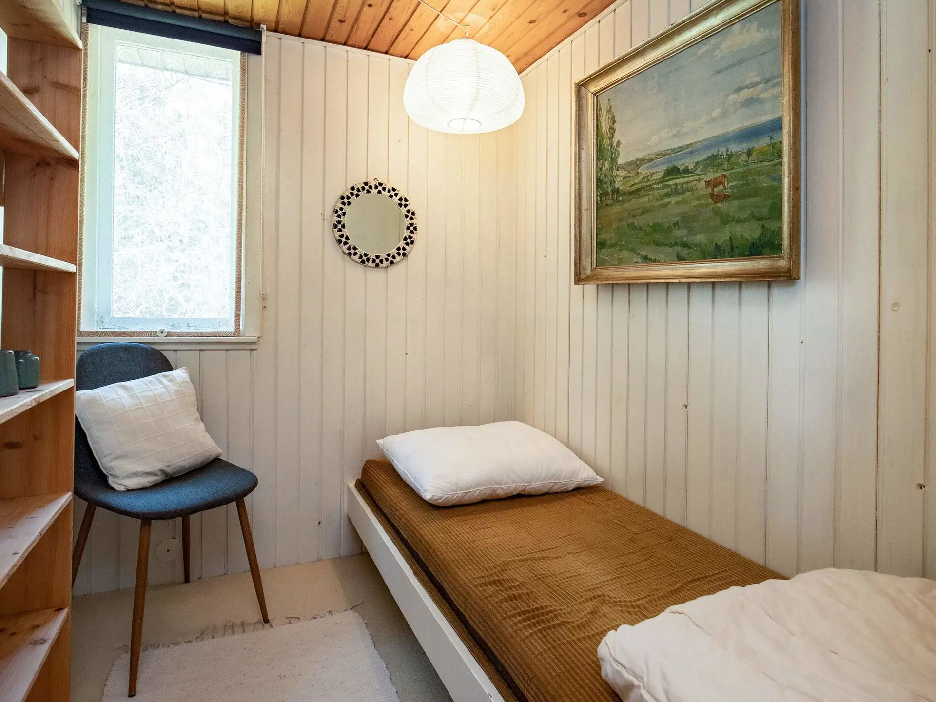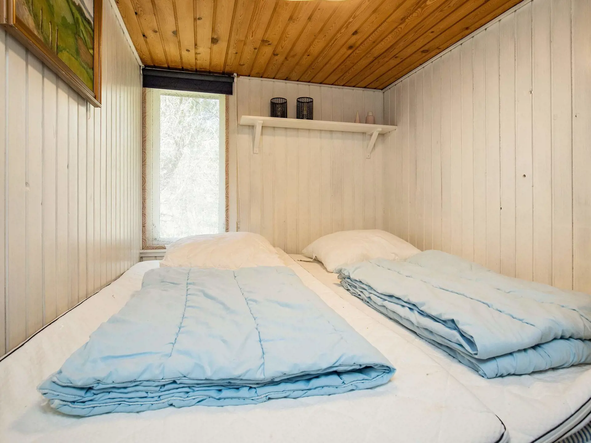 Im Ferienhaus gibt es vier Schlafzimmer; zwei mit je einem Doppelbett, eines davon ein kleineres Zimmer ohne Stellfläche, zwei weitere mit je einem Einzelbett, eines davon mit einem höheren Bett, sowie Platz zum Spielen und Verstauen von Kinderbett/Hochstuhl.