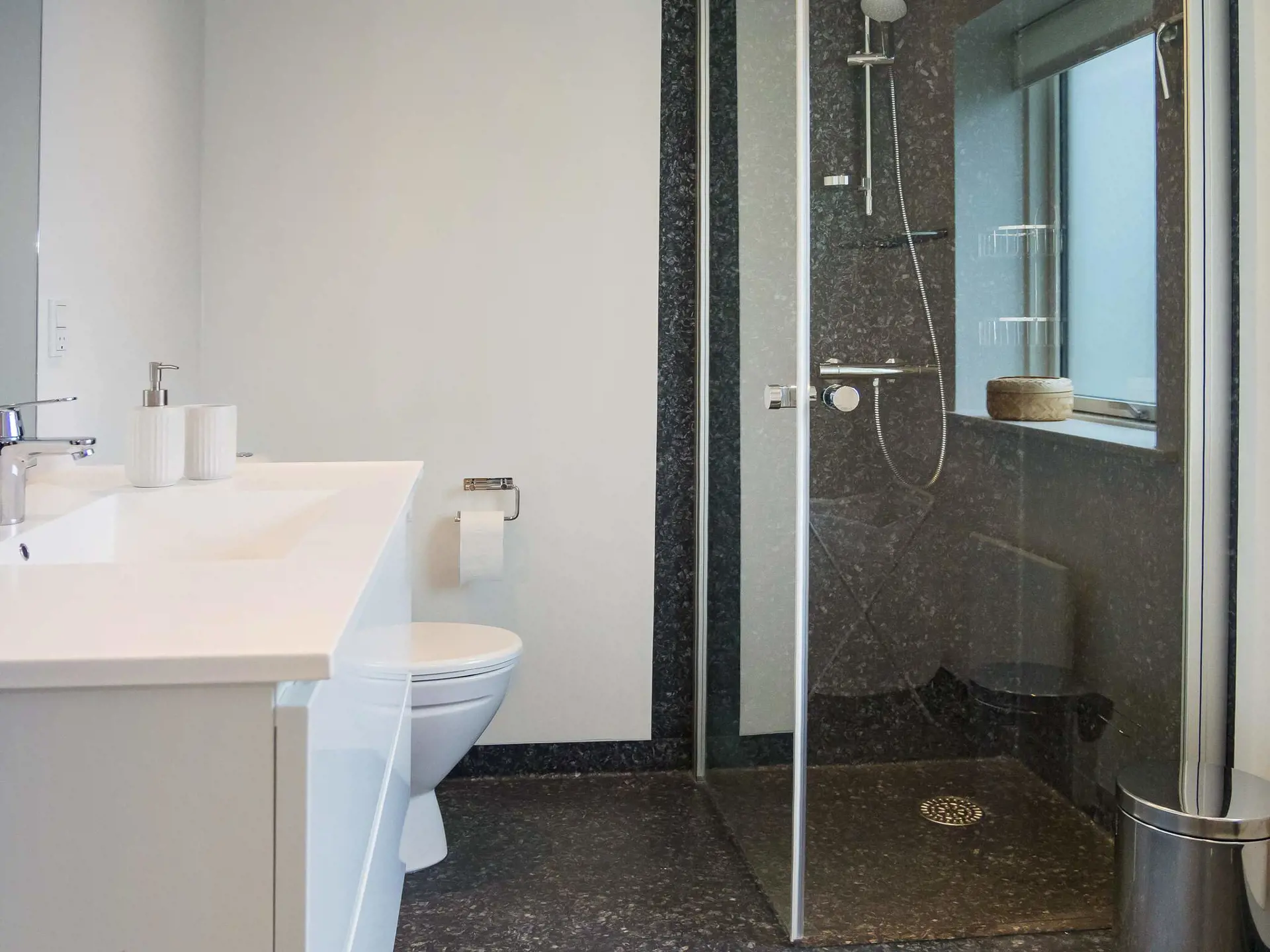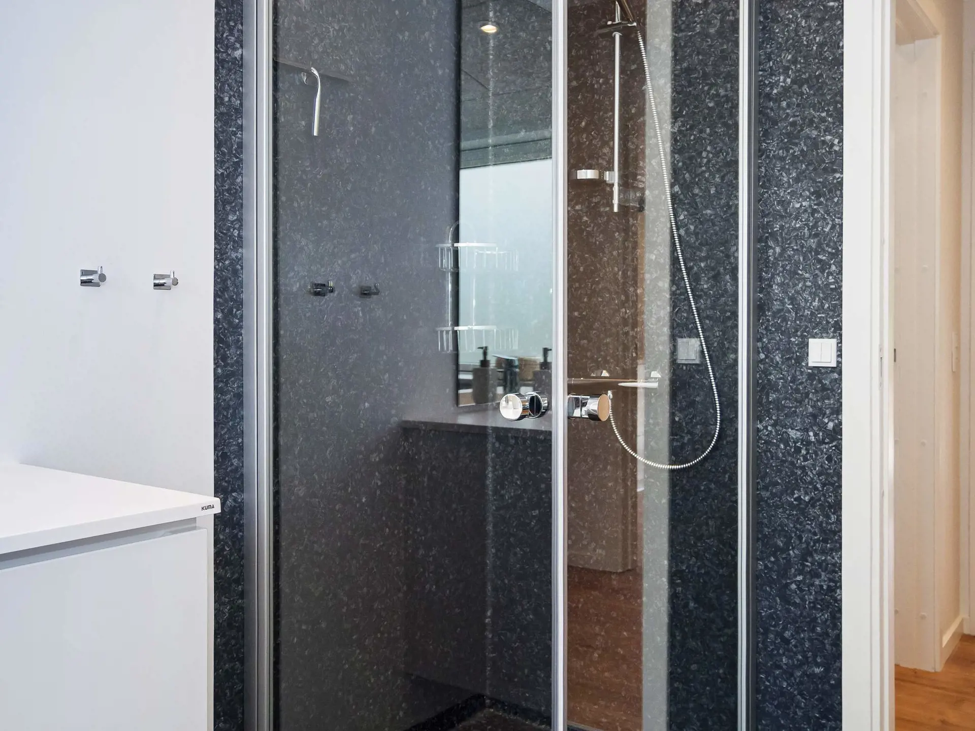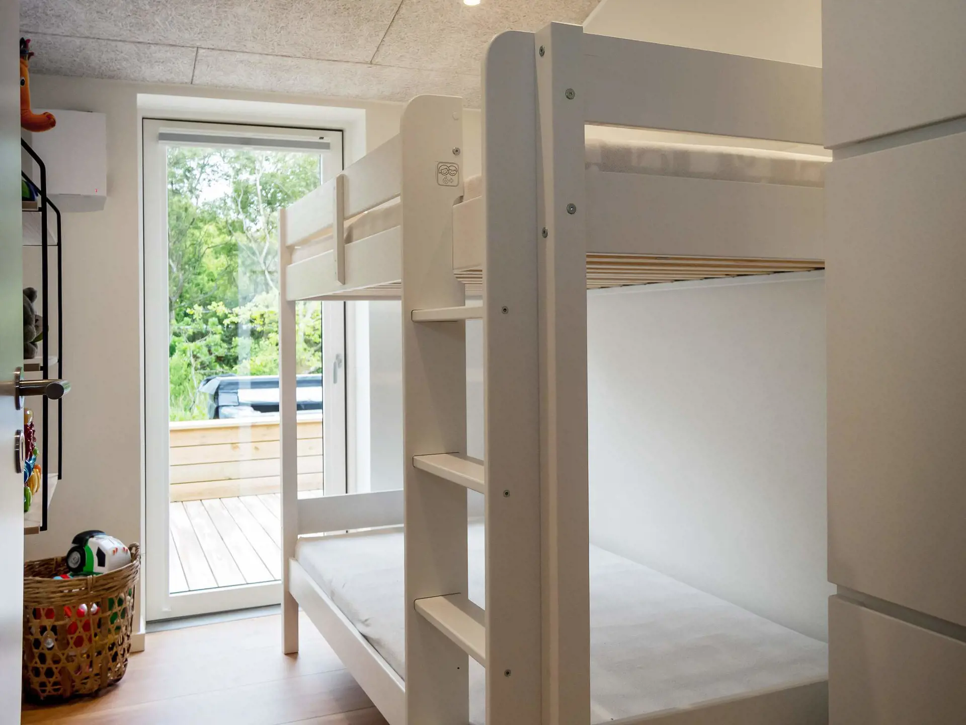 Sie verfügen im Haus über vier Schlafzimmer; drei mit je einem 140, 200 cm großen Doppelbett, da vierte Zimmer mit Etagenbett mit zwei Kojen. Zudem zwei Badezimmer mit Dusche im Haus. Im praktischen Hauswirtschaftsraum stehen sowohl eine Waschmaschine als auch ein Wäschetrockner zur Verfügung.