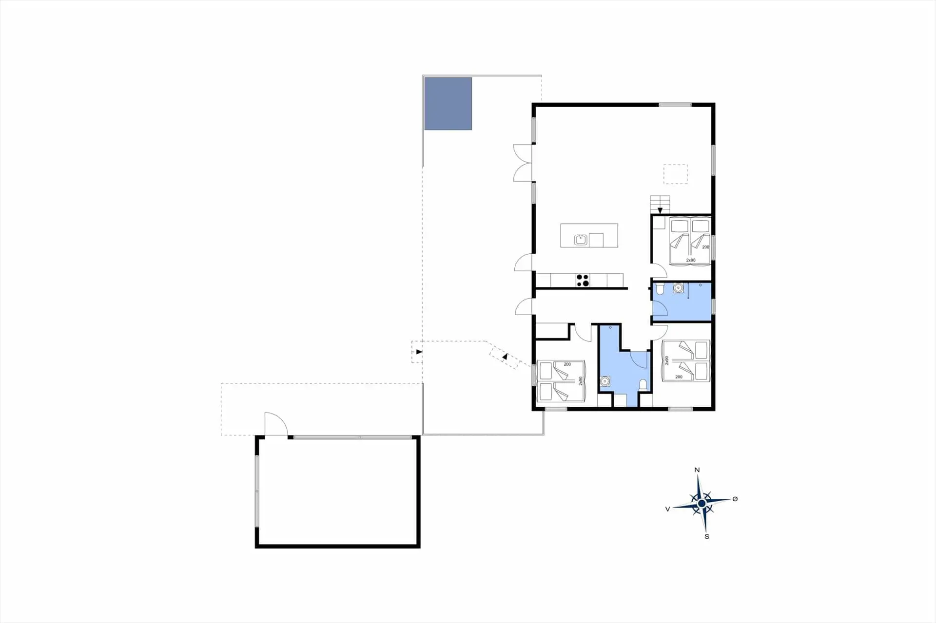 - Anzahl Doppelbetten: 3 2x90x200 cm