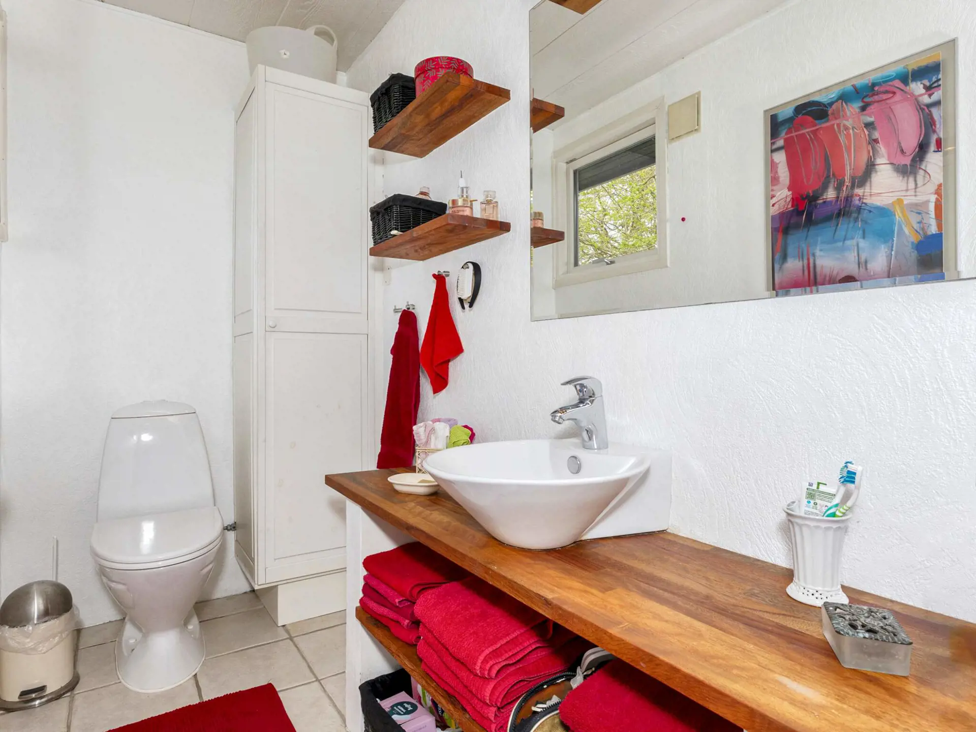 Ferienhaus im Ferienhausgebiet von Ertebølle. Küche mit u.a. Spülmaschine und Kühl-/Gefrierschrank. Es gibt ein Zimmer mit Etagenbett mit zwei Kojen, ein Zimmer mit einem Doppelbett und ein 3. Zimmer mit einer doppelten Schlafcouch. Im Wohnzimmer Holzofen (inkl. Brennholz) und Fernseher mit Chromecast sowie Glasfaser-WLAN. Badezimmer mit Fußbodenheizung und Duschkabine. Waschmaschine und Trockner vorhanden. Überdachte Terrasse mit Holzkohlegrill. Insgesamt gibt es zwei Terrassen, sodass man im Garten Sonne oder Schatten findet. Schaukel und Sandkasten im Garten.