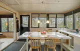 Dieses Haus ist der ideale Rückzugsort, wenn Sie sich nach einem Urlaub ruhiger, naturnaher Umgebung sehnen. Große Fensterfronten lassen viel helles Tageslicht ins Innere, während Sie eine schöne Aussicht ins Grüne genießen. Entspannen Sie sich bei einer Tasse Kaffee, hören Sie einen interessanten Podcast und finden Sie ganz allmählich in den Urlaubsmodus.