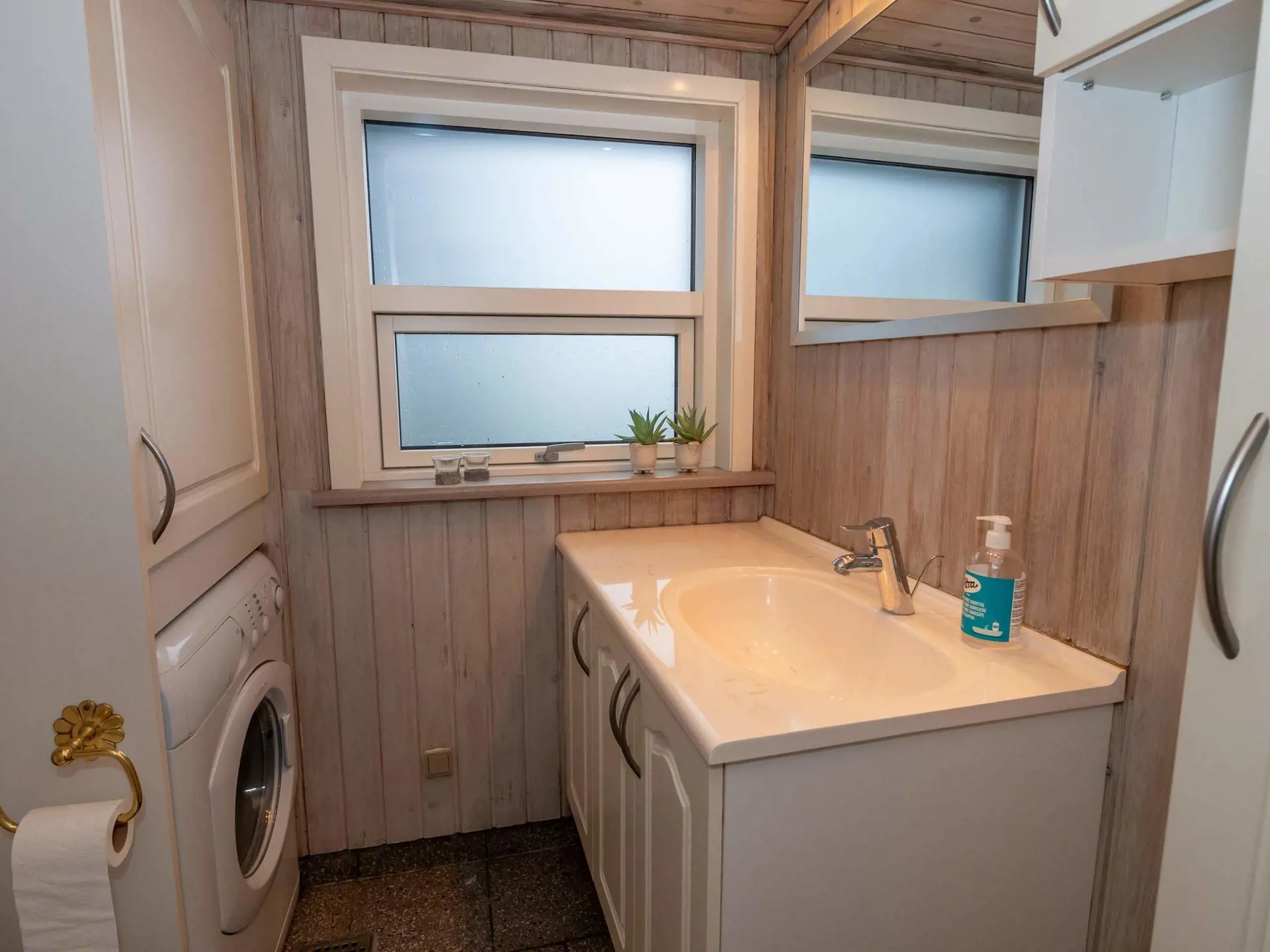 Das Haus verfügt über zwei Badezimmer. Eines ist mit WC, Dusche und Waschbecken ausgestattet, das andere mit WC und Waschbecken. Dadurch eignet sich das Haus für mehrere Personen.