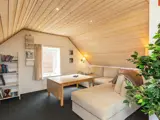 Oben im Dachgeschoss des Ferienhauses findet man einen geräumigen Aufenthaltsraum, u.a. mit Zugang zu einem fantastischen Balkon mit Sitzgelegenheiten und Panoramablick zum Wasser.