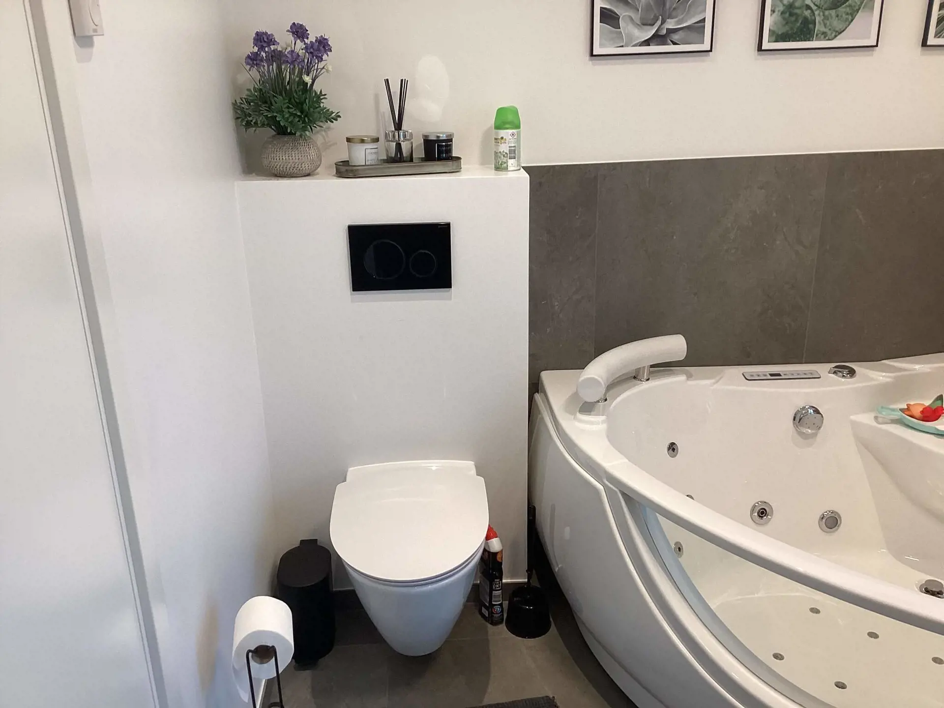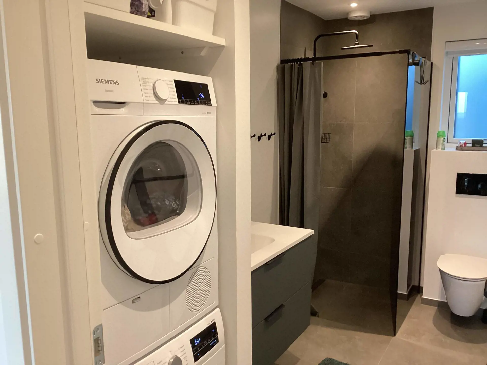 Das helle und schöne Badezimmer ist mit Badewanne, Dusche und WC ausgestattet. Ein Gäste-WC mit Badewanne, Dusche und WC steht Ihnen ebenfalls zur Verfügung. Außerdem gibt es eine Waschmaschine und einen Trockner.