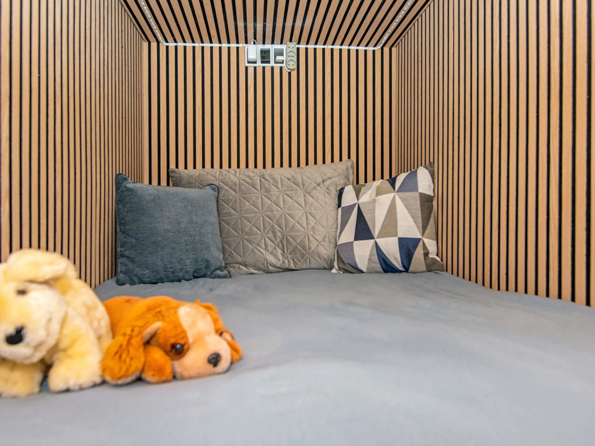 Im Ferienhaus selbst gibt es ein Schlafzimmer mit einem guten Doppelbett, außerdem eine Schlafalkoven mit einer Doppelliege, die hauptsächlich für 1-2 Kinder geeignet ist. Darüber hinaus steht nebenan ein separater Annex mit zwei Schlafzimmern bereit; eines mit einem Doppelbett (140 x 200 cm), das andere mit einem Etagenbett mit zwei Kojen.
