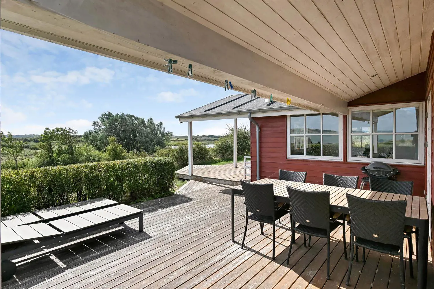 Das Haus liegt auf einem 1000 qm großen Panorama Grundstück mit freiem Blick über die Landschaft und Limfjord. Außerdem liegt das Haus bloß 150 m vom Limfjord und bloß 5300 m von dem Ort Lemvig entfernt. Vom Wohnraum gibt es Ausgang zu 2 teilweise überdachten Terrassen mit Gartenmöbeln und Sonnenliegen, von beiden Terrassen gibt es einen tollen Blick über das Wasser. Es gibt auch einen Feuerplatz. Die Lage des Hauses dicht an dem Ort Lemvig ist sehr schön, hier gibt es sehr gute Restaurants und Geschäfte. Möchten Sie zu dem Fischerdorf Thyborøn, dann ist es bloß eine kurze Autofahrt von etwa 15 Minuten vom Haus. Das perfekte Haus für die Familie die mit einem tollen Blick dicht am Limfjord wohnen möchten.