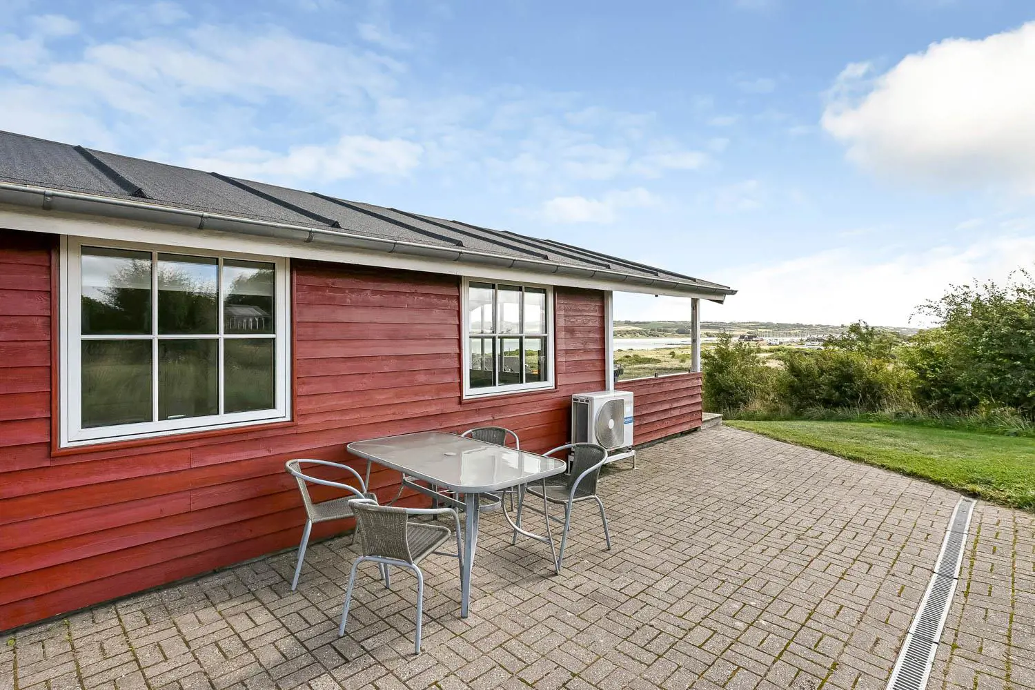 Dieses schöne Ferienhaus aus Holz ist mit großen Fensterpartien, und ist hell, freundlich und modern eingerichtet; von der Küche und dem Wohnraum gibt es einen schönen Blick über den Limfjord und den Freizeit Hafen. In der Küche gibt es Fliesenboden und im Wohnraum Holzboden. Das Badezimmer ist mit Toilette, Waschbecken, Dusche, Whirlpool und Fliesenboden mit Fußbodenheizung. Das Haus ist mit 3 Schlafräumen: 1DB + 1DB + 2B. Die Küchenabteilung ist mit Herd mit Cerankochfeld, Kühlschrank, 90 l Gefrierfach, Geschirrspüler und Mikrowelle ausgestattet. Der Wohnraum ist mit Polstermöbeln und TV mit dänischen und deutschen Programmen, Esstisch mit Stühlen, die dicht an der Küche platziert sind, Kaminofen der eine sehr schöne Wärme bei jeder Jahreszeit gibt und zusammen mit der Wärmepumpe dafür sorgt, dass die Nebenkosten niedriger werden. Es gibt Waschmaschine und Trockner. Für die kleinsten Gäste gibt es ein Kinderbett. Freies WLAN. 1 Haustier ist erlaubt. Nichtraucher-Haus.