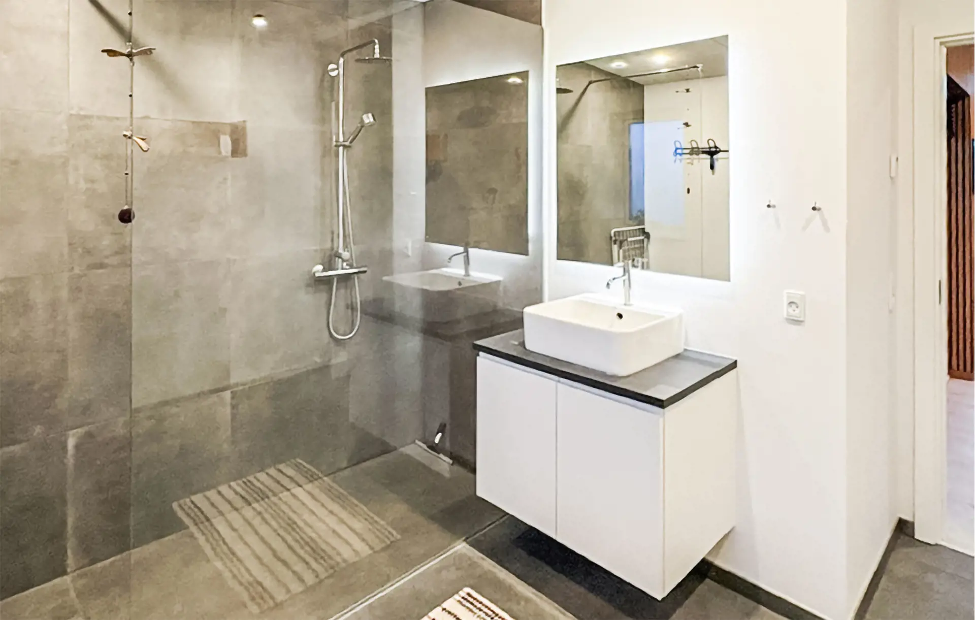 Die große Holzterrasse lädt zu entspannten Momenten an der frischen Luft mit Blick auf die Landschaft ein, während die Kinder auf der großen Rasenfläche spielen oder die Umgebung erforschen. Dank des Whirlpools können Sie draußen den Tag ausklingen lassen und im warmen Wasser entspannen.