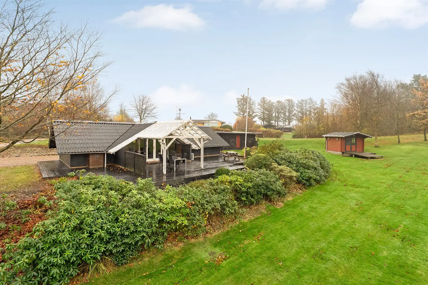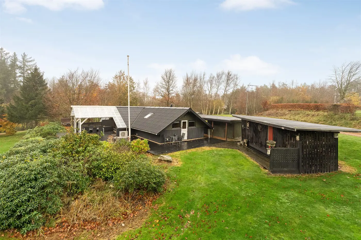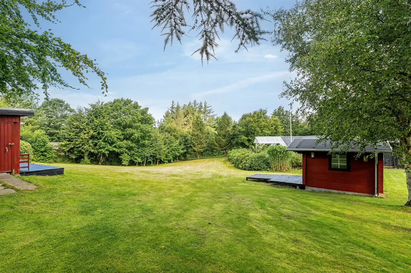 Die Ferienunterkunft liegt auf einem 2581 m² großen Naturgrundstück. Die Entfernung zum Meer beträgt 25000 m. Die Entfernung zum Fjord beträgt 500 m. Es gibt einen Badesteg in der Nähe. Die nächste Einkaufsmöglichkeit liegt 4500 m entfernt. In einem Abstand von 12000 m gibt es einen Golfplatz. Es steht ein offenes Terrassenareal zur Verfügung. Außerdem gibt es überdachte Terrasse. Geräteraum.Lagerfeuerstelle. Es steht ein Carport zur Verfügung. Parkplatz auf dem Grundstück.