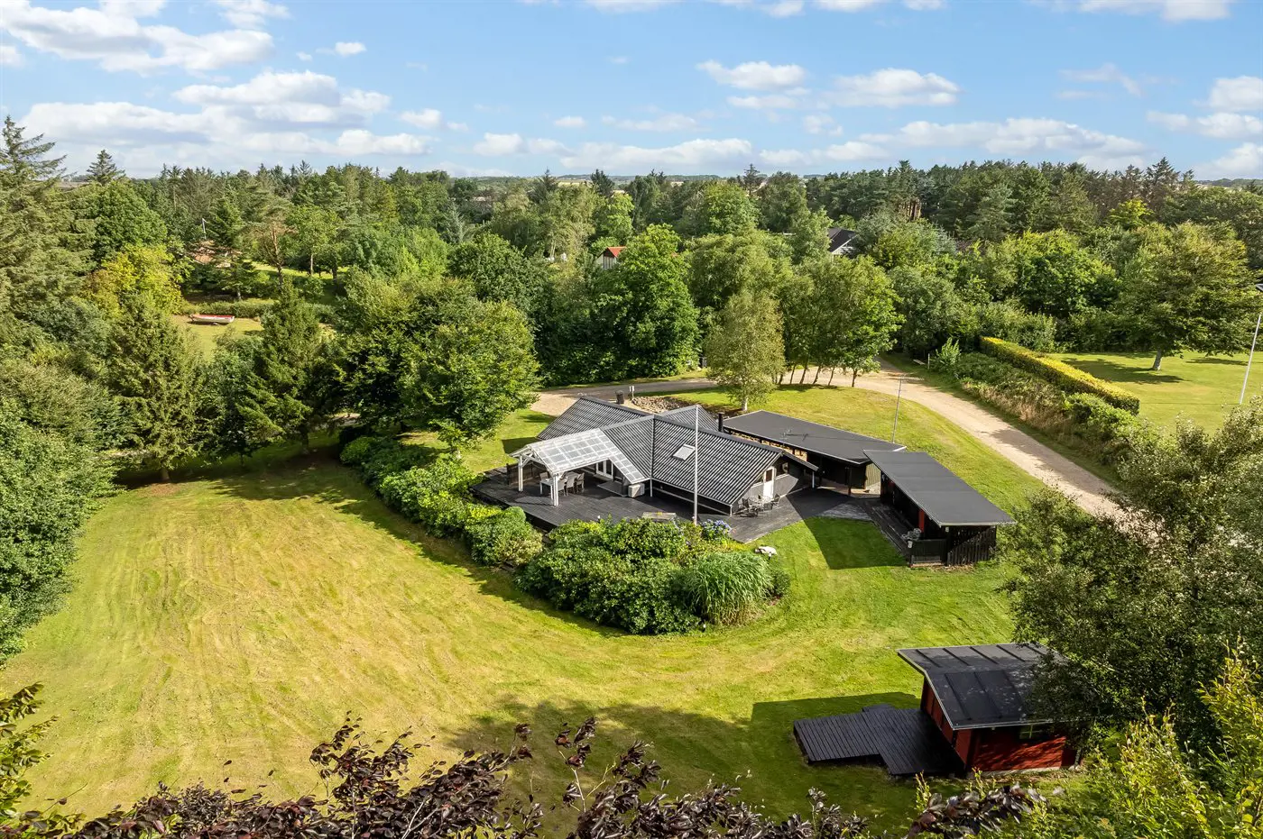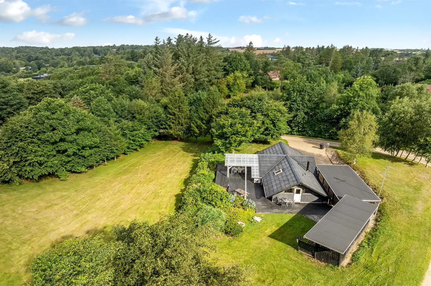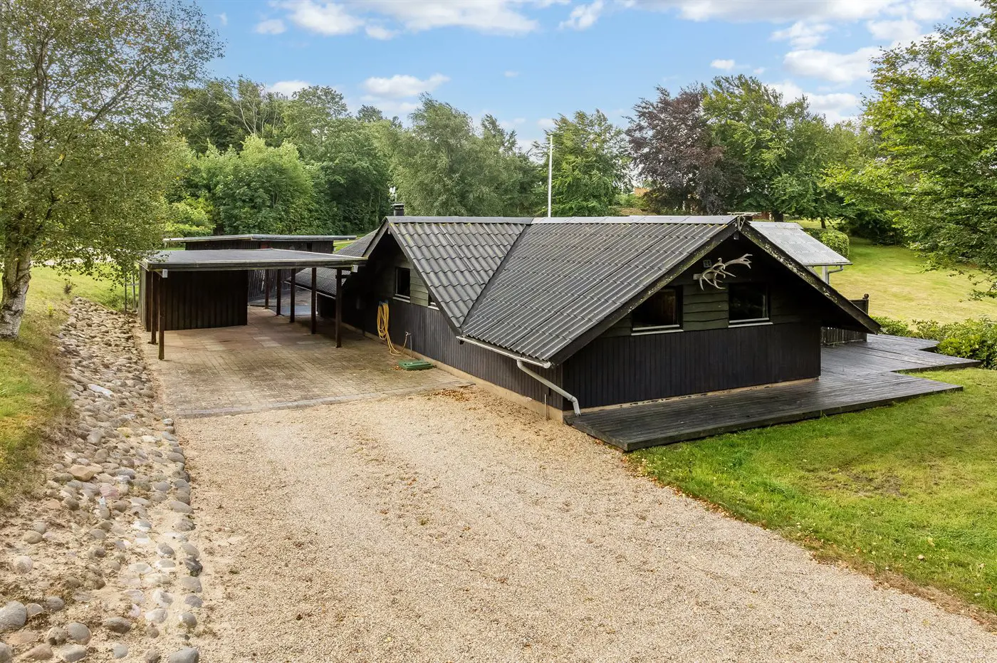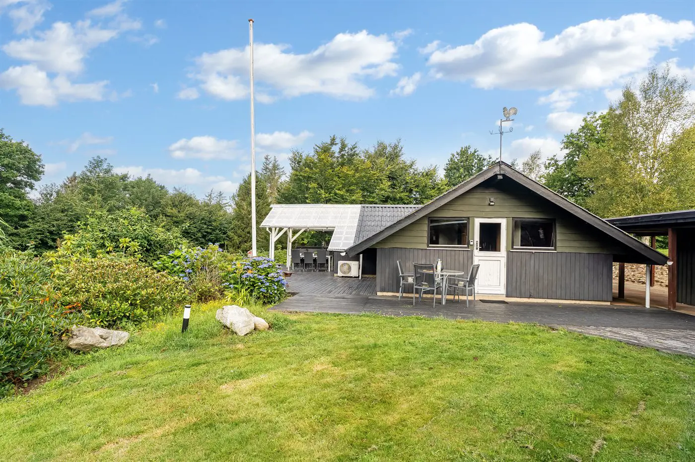 Die Ferienunterkunft liegt auf einem 2581 m² großen Naturgrundstück. Die Entfernung zum Meer beträgt 25000 m. Die Entfernung zum Fjord beträgt 500 m. Es gibt einen Badesteg in der Nähe. Die nächste Einkaufsmöglichkeit liegt 4500 m entfernt. In einem Abstand von 12000 m gibt es einen Golfplatz. Es steht ein offenes Terrassenareal zur Verfügung. Außerdem gibt es überdachte Terrasse. Geräteraum.Lagerfeuerstelle. Es steht ein Carport zur Verfügung. Parkplatz auf dem Grundstück.