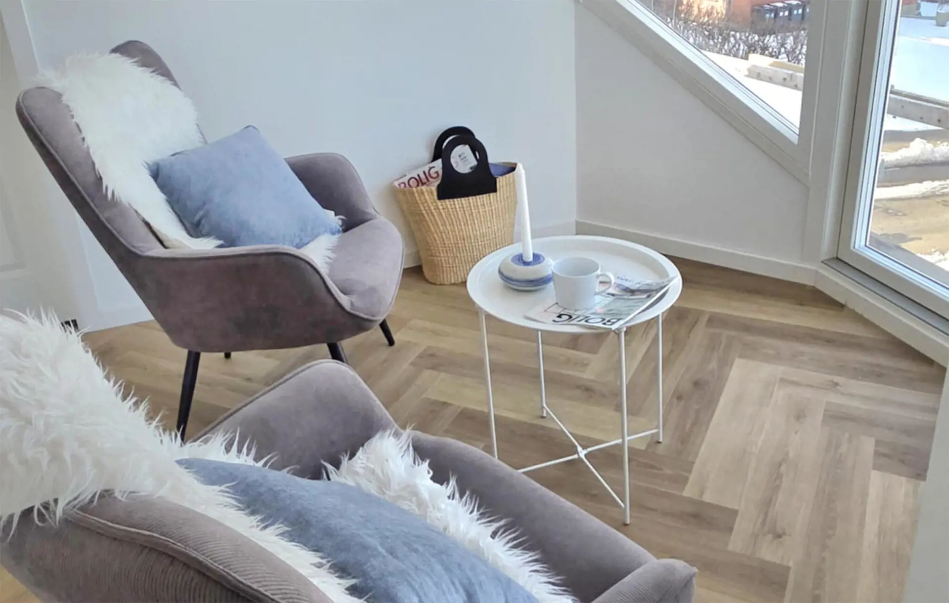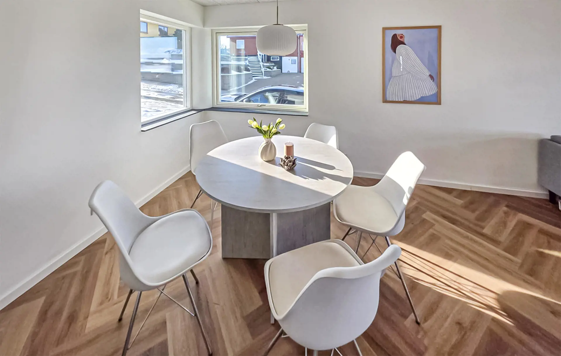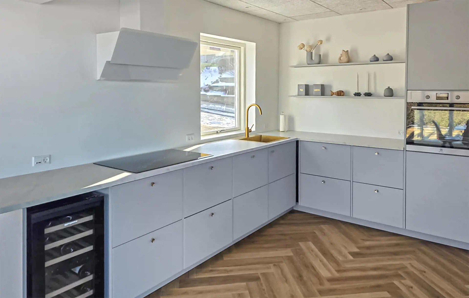 Dieses lichtdurchflutete Haus überzeugt mit seiner freundlichen Atmosphäre und dem fantastischen Blick auf den Fjord. Lehnen Sie sich entspannt bei einer Tasse Kaffee zurück, hören Sie Ihre Lieblingsmusik oder verbringen Sie einen Nachmittag beim Kartenspielen mit den Kindern. Zaubern Sie köstliche Mahlzeiten in der modernen Küche und genießen Sie sie mit Blick aus dem Fenster.