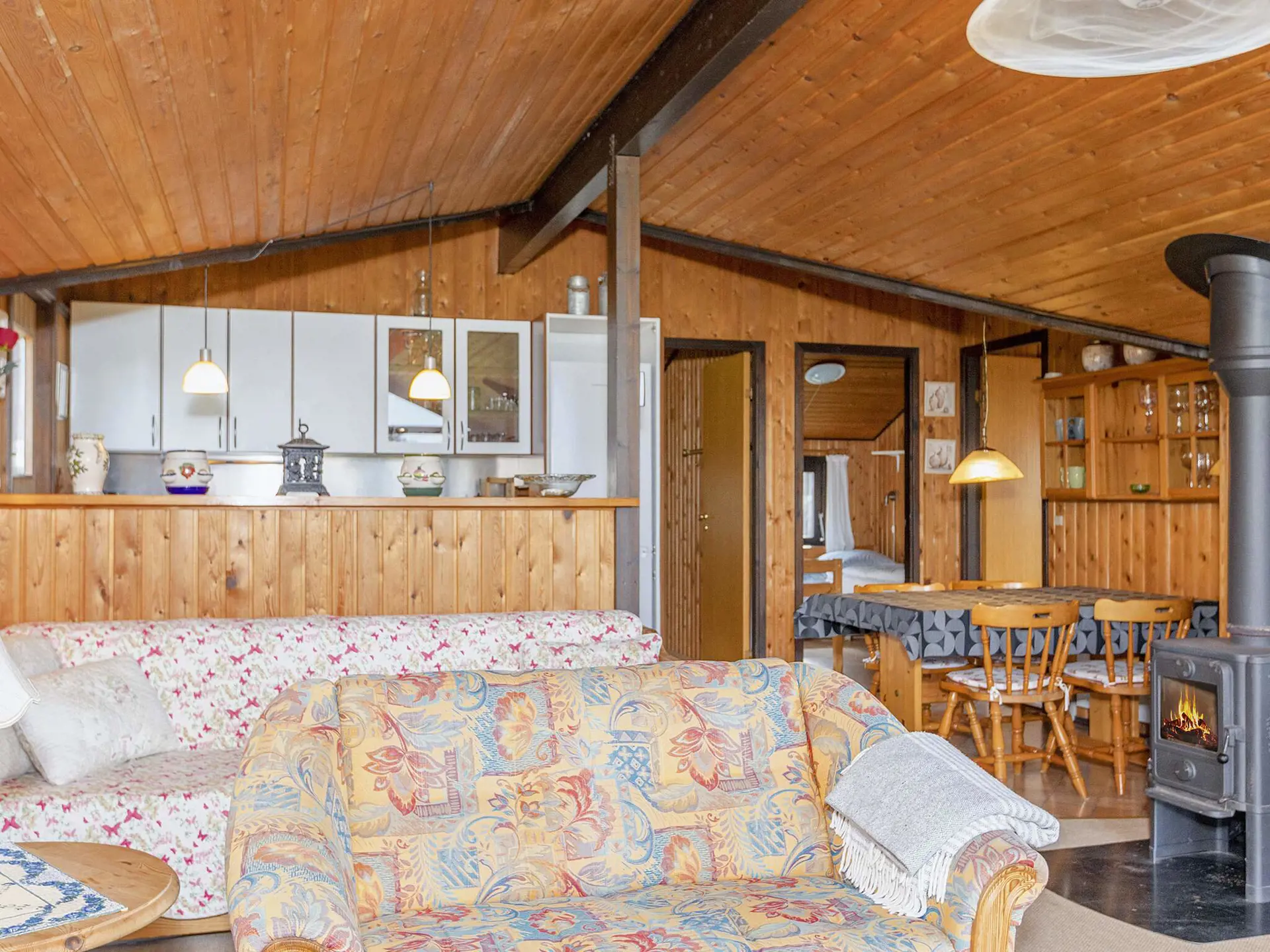 Ferienhaus mit schönem, windgeschütztem Grundstück im Ferienhausgebiet Kærgården. Das ältere Haus ist mit persönlicher Note eingerichtet. An einem kühleren Abend sorgt der Holzofen für Gemütlichkeit und Wärme. Offene Küche mit Herd, Dunstabzugshaube, Kühl-/Gefrierschrank und praktischer Waschmaschine.