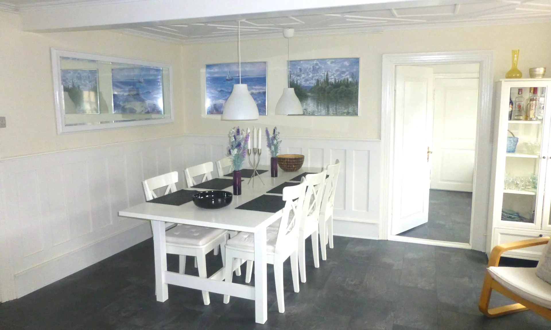 Im Inneren bietet das Haus drei Schlafzimmer mit fünf Schlafplätzen – zwei mit Doppelbetten und eines mit einem Einzelbett. Die Küche ist voll ausgestattet, und es gibt ein Badezimmer, eine Waschküche mit Waschmaschine, WLAN sowie einen Fernseher mit Chromecast. Luft-Luft-Wärmepumpen sorgen das ganze Jahr über für Komfort.