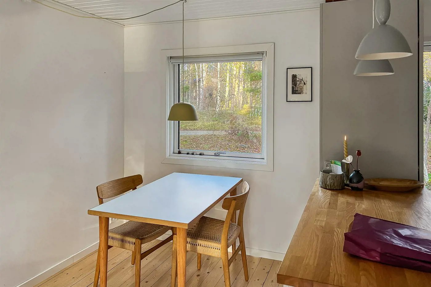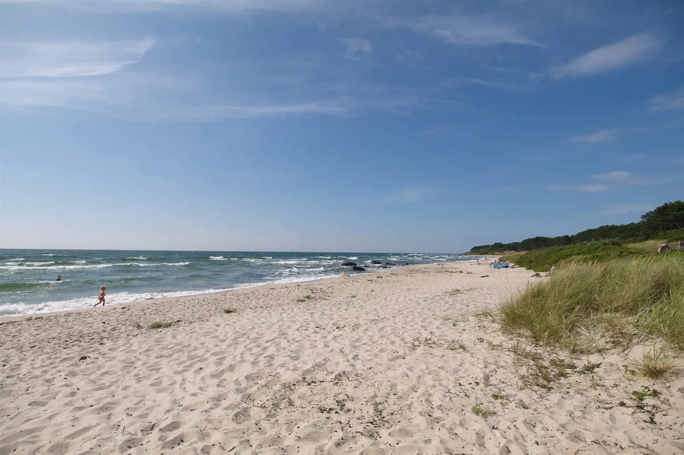 Sowohl vom Wohnbereich als auch von der Holzterrasse aus hast zwischen den Bäumen Blick auf das Meer, und der Sandstrand liegt nur wenige Minuten zu Fuß vom Haus entfernt. Ein reiches Tierleben mit Hasen, Rehen und Eichhörnchen gehört ganz natürlich zum Aufenthalt dazu.