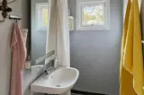 Es gibt 1 Badezimmer mit Dusche und 1 Toilette.