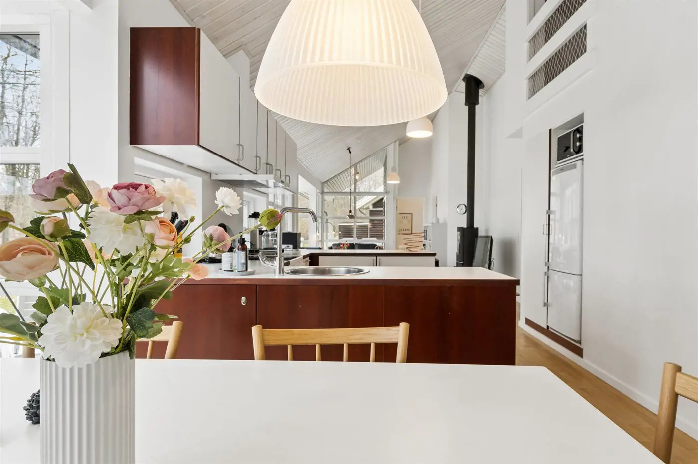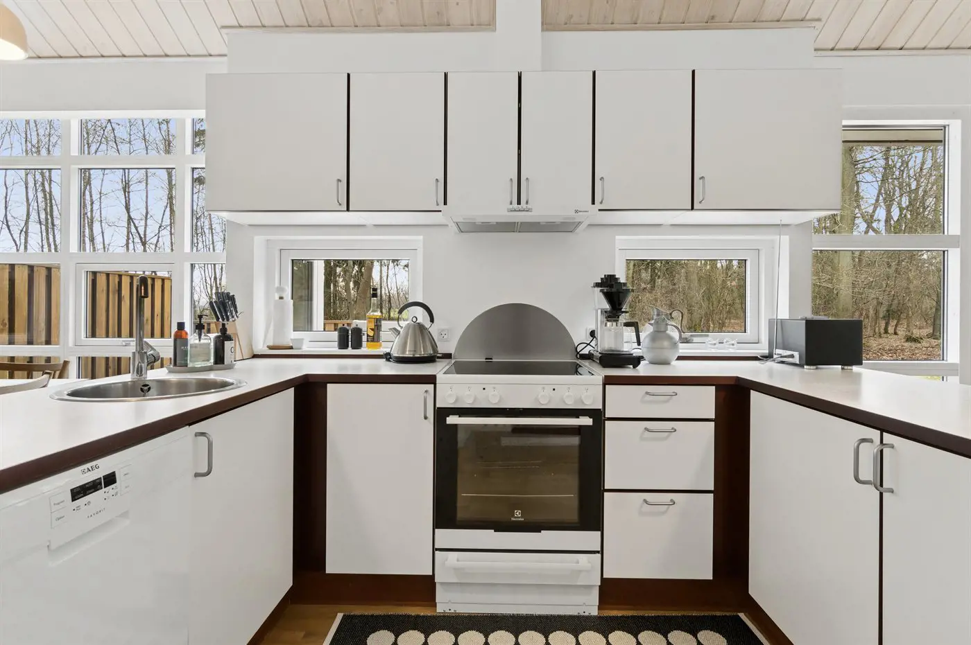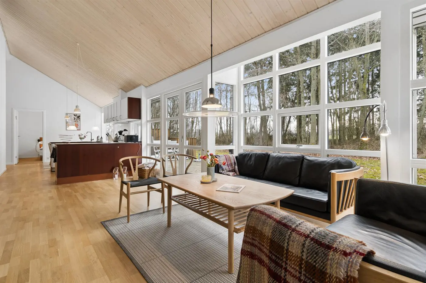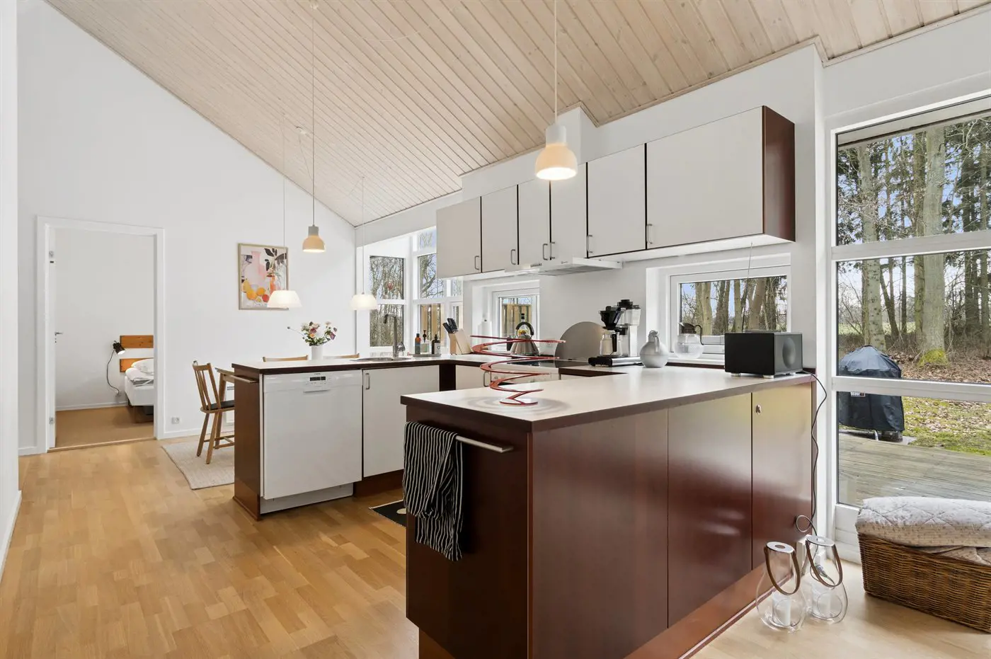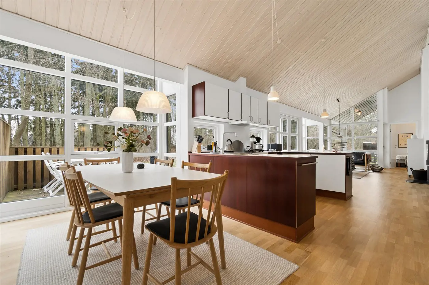 Auch außen präsentiert sich das Haus sehr gepflegt. Besonders die große, teilweise überdachte Terrasse lädt dazu ein, die Ruhe der grünen Umgebung zu genießen. Von hier aus erreichst du außerdem bequem die von Wald umgebenen Ufer des Rubinsøen – ein echtes Naturjuwel.