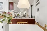 Die Küche ist mit Kühlschrank ausgestattet. Außerdem gibt es 4 Keramik-Kochfelder, Umluftofen, Mikrowelle sowie Geschirrspüler.