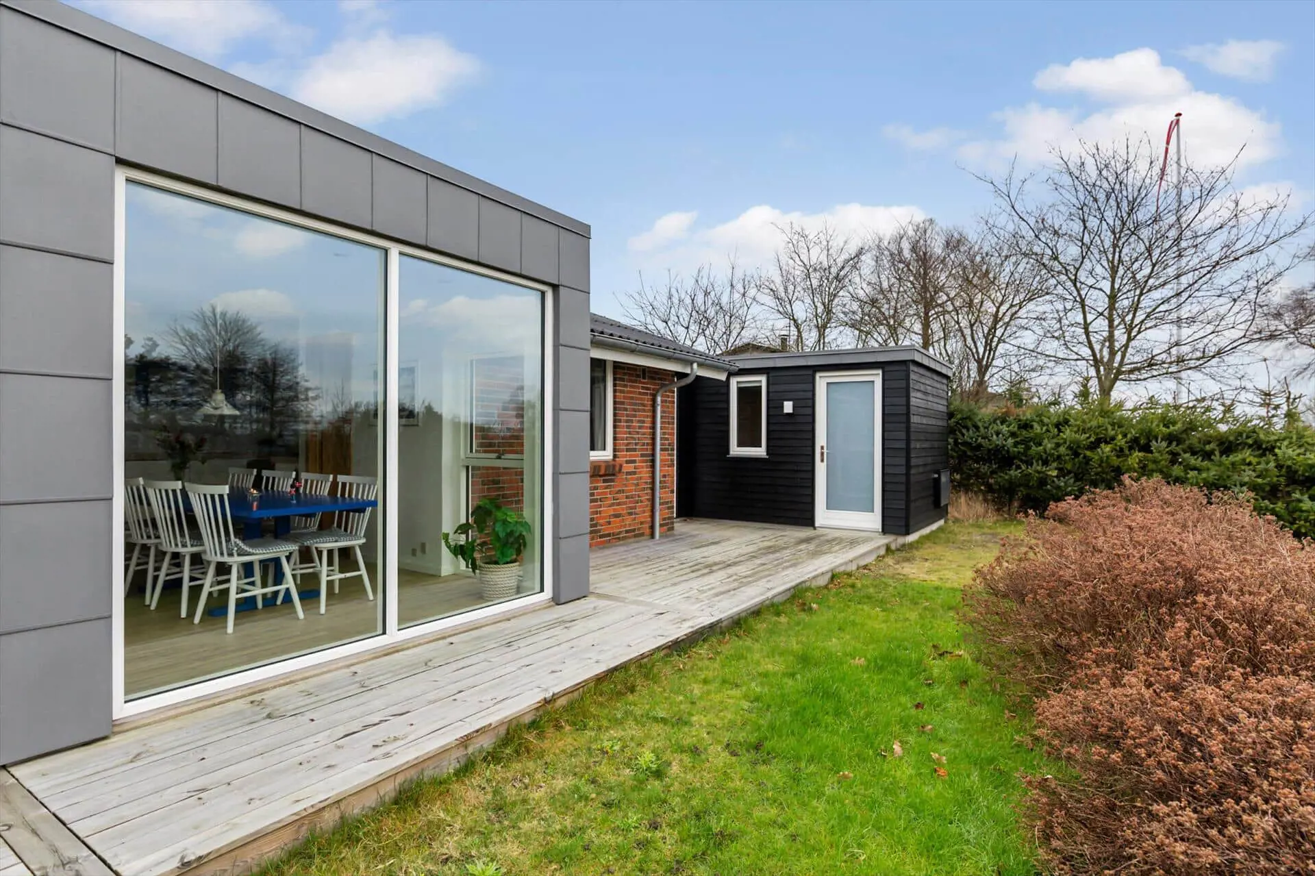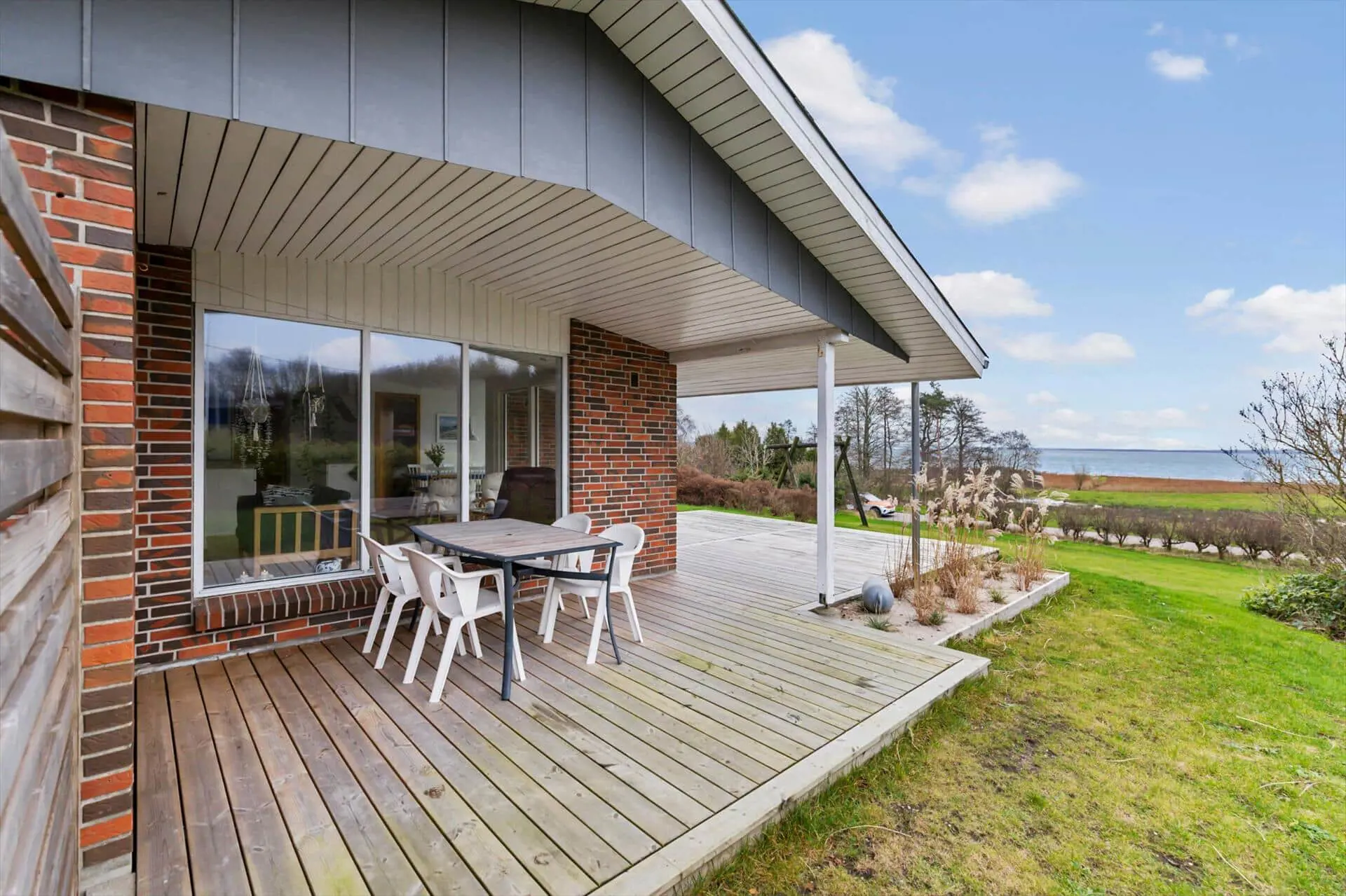 Die Terrasse und der Garten des Ferienhauses laden zu langen, entspannten Urlaubstagen unter freiem Himmel ein. Beginne den Morgen mit einer Tasse Kaffee in der Sonne, während du den Blick auf den Fjord und die frische Luft genießt, oder beende den Tag mit einem guten Essen, wenn die Sonne langsam über dem Wasser untergeht. Die Terrasse bietet viel Platz für Entspannung und gemeinsames Beisammensein, und der Garten ist ein schöner Ort für spielende Kinder, während die Erwachsenen sich zurücklehnen und die Urlaubsatmosphäre auf sich wirken lassen. Ob sonnige Nachmittage mit einem guten Buch oder gemütliche Abende mit Gesprächen und Lachen – der Außenbereich ist eine natürliche Verlängerung des Ferienhauses. Durch die Nähe zum Fjord wird die Aussicht fast ein Teil der Terrasse und schafft ein ganz besonderes Gefühl von Naturverbundenheit.