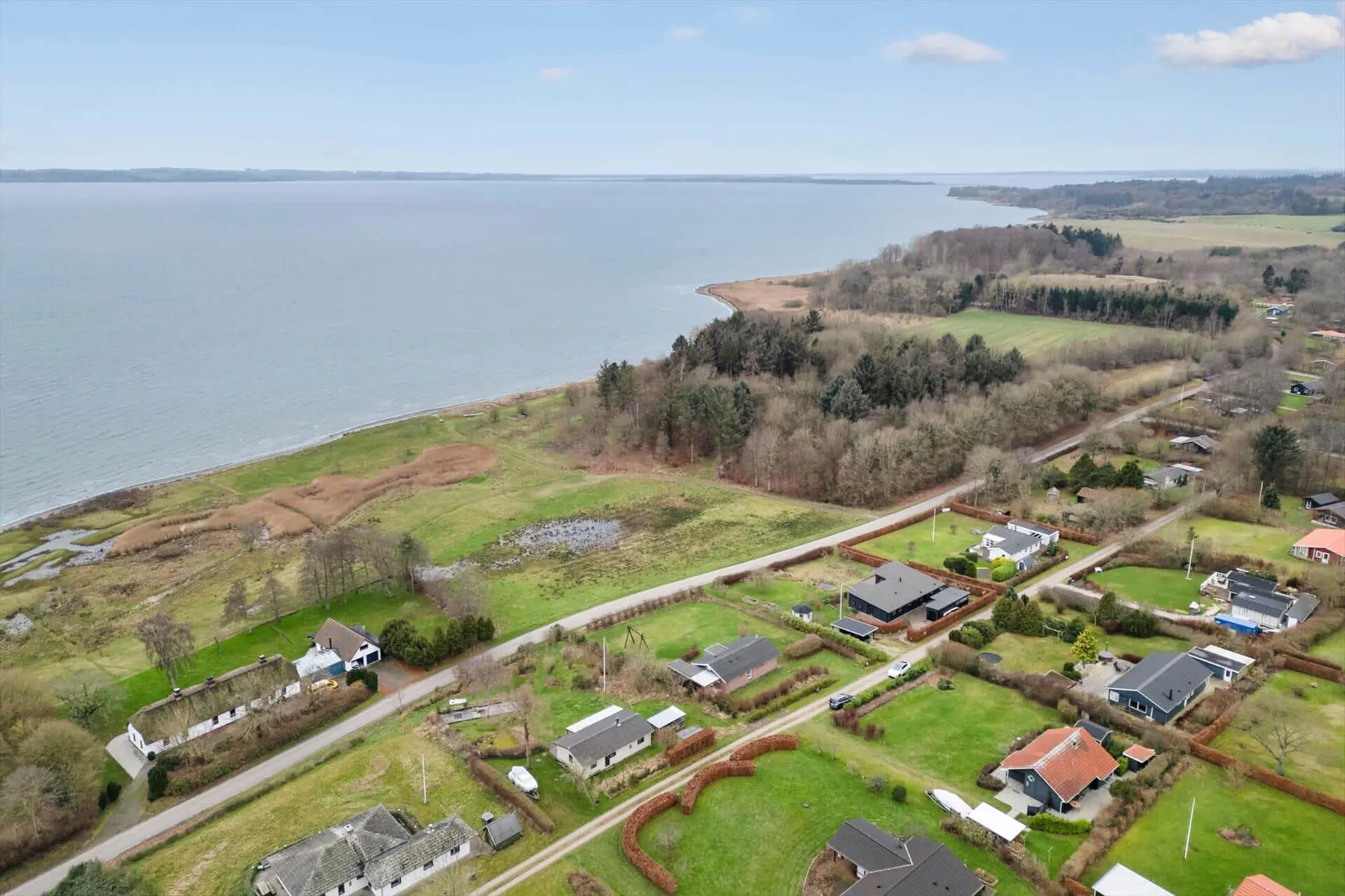 Im Inneren empfängt dich eine helle, moderne und einladende Einrichtung, in der die Räume offen und leicht wirken und das Tageslicht ungehindert einfällt und die entspannte Urlaubsstimmung unterstreicht. Das Wohnzimmer ist der natürliche Treffpunkt des Hauses, und hier lässt es sich wunderbar mit einer Tasse Kaffee niederlassen, während der Blick über die wechselnden Farben des Limfjords schweift. Der Panoramablick sorgt für eine besondere Ruhe, die es leicht macht, den Alltag vollständig hinter sich zu lassen. Küche und Wohnbereich sind offen miteinander verbunden, sodass Gespräche ganz selbstverständlich weitergehen – egal, ob gemeinsam gekocht oder am Esstisch gespielt wird. Wenn der Tag sich dem Ende zuneigt, kannst du dich zurückziehen und die Stille genießen, die nur vom Wind und den leisen Geräuschen der umliegenden Natur unterbrochen wird.
