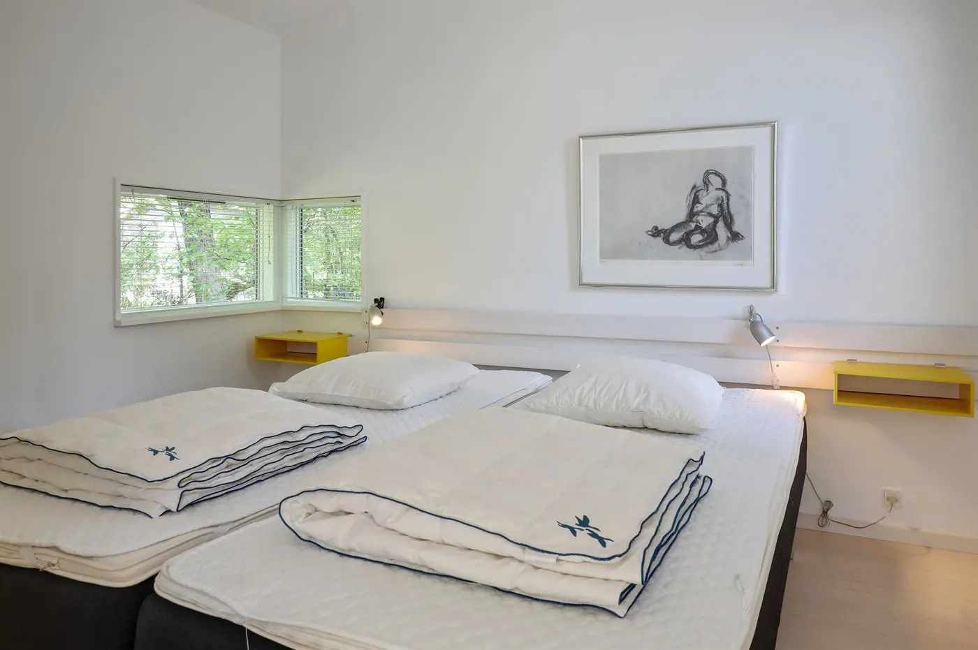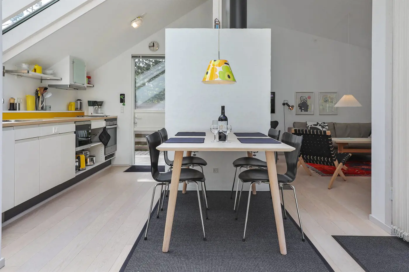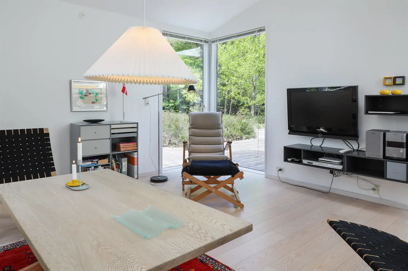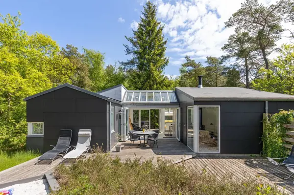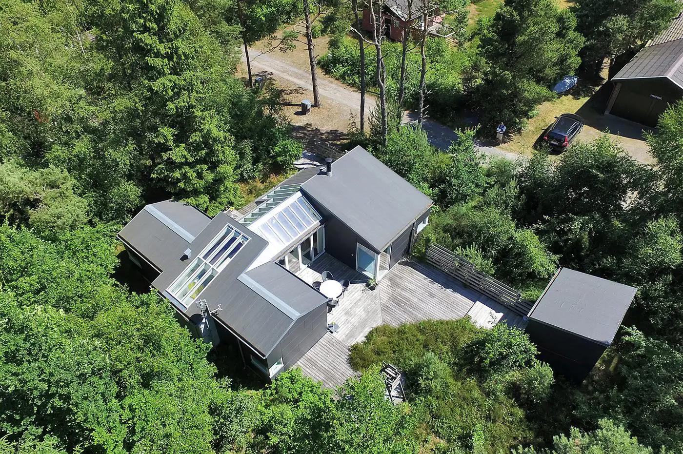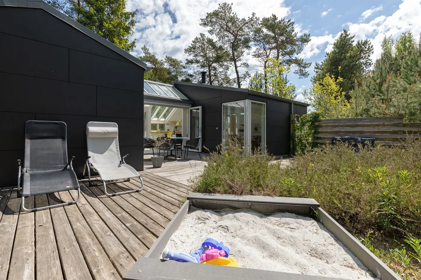 Ein besonders gut gelegenes und gut eingerichtetes Ferienhaus, 2007 gebaut, von Holzterrassen mit Gartenmöbeln umgeben. Die nach Osten und Westen gerichteten Fensterfronten lassen das Haus hell und freundlich erscheinen. Innen gibt es helle Holzböden, Gipsdecken sowie weißgestrichene Wände. Die großen Glastüren können alle geöffnet werden. Das Ferienhaus liegt nur 150 m vom hübschen und sehr kinderfreundlichen Balka Strand entfernt. Badezimmer mit Duschnische, Whirlpool, Fußbodenheizung, Waschmaschine und Wäschetrockner. Die Küche ist u. a. mit Tiefkühlgerät, Herd mit Ceran-Feld, Umluftofen, Mikrowelle und Geschirrspüler ausgestattet. Das Wohnzimmer ist mit Kaminofen, TV mit digitalem Satellitenanschluss, DVD-Spieler, CD-Spieler sowie kostenloser, kabelloser Internetverbindung (eigener Computer muss mitgebracht werden) eingerichtet. Das Wohn-/Esszimmer verbindet die Küchenabteilung mit der Bade- und Schlafabteilung. Die 2 Schlafzimmer des Hauses sind beide mit Doppelbett ausgestattet. Die Betten können jedoch nach Bedarf auseinander geschoben werden. Helles und geräumiges, offenes Obergeschoss mit 2 Schlafplätzen.Es ist eine energiesparende Wärmepumpe installiert. Für die jüngsten Feriengäste gibt es 2 Schaukeln sowie Sandkasten auf dem Grundstück. Das Gebiet Balka ist durch einen kinderfreundlichen, weißen Sandstrand mit verschiedenen Aktivitätsmöglichkeiten (u. a. Minigolf) gekennzeichnet. Von anderen Aktivitätsmöglichkeiten auf Balka können Fahrradvermietung, Restaurants und Keramikgeschäft erwähnt werden. Snogebæk liegt nur 500 m vom Haus entfernt. In Snogebæk gibt es u. a. Schokoladenfabrik, ökologischen Eisverkauf, einige anderen Sommergeschäfte sowie den Inselhafen. Auf der Insel gibt es ferner den 18-Loch Golfplatz Dueodde Golfbane sowie drei andere Golfplätze.