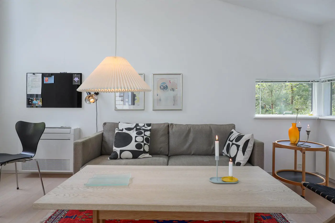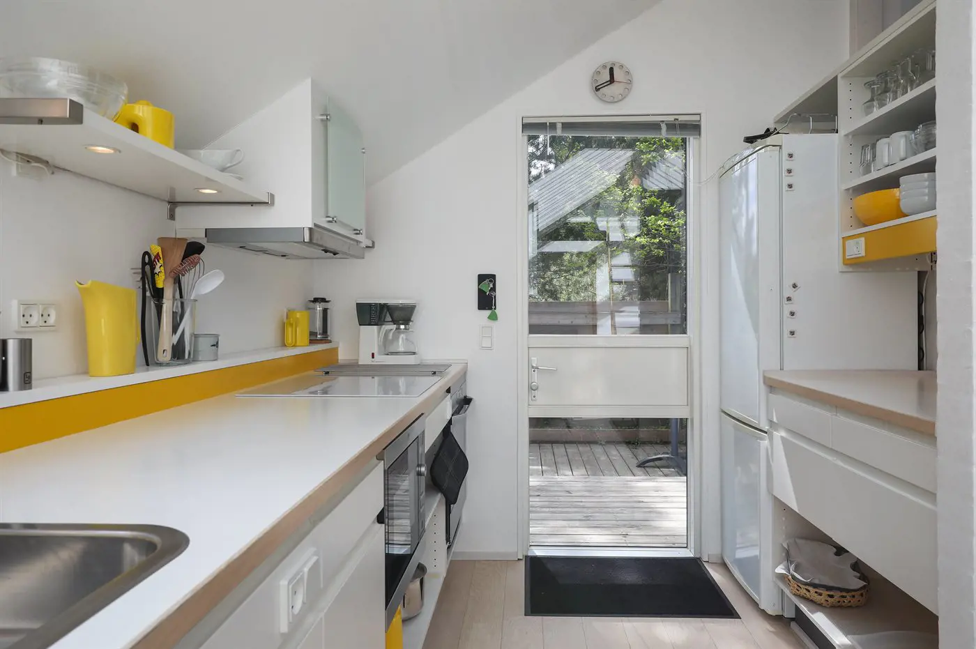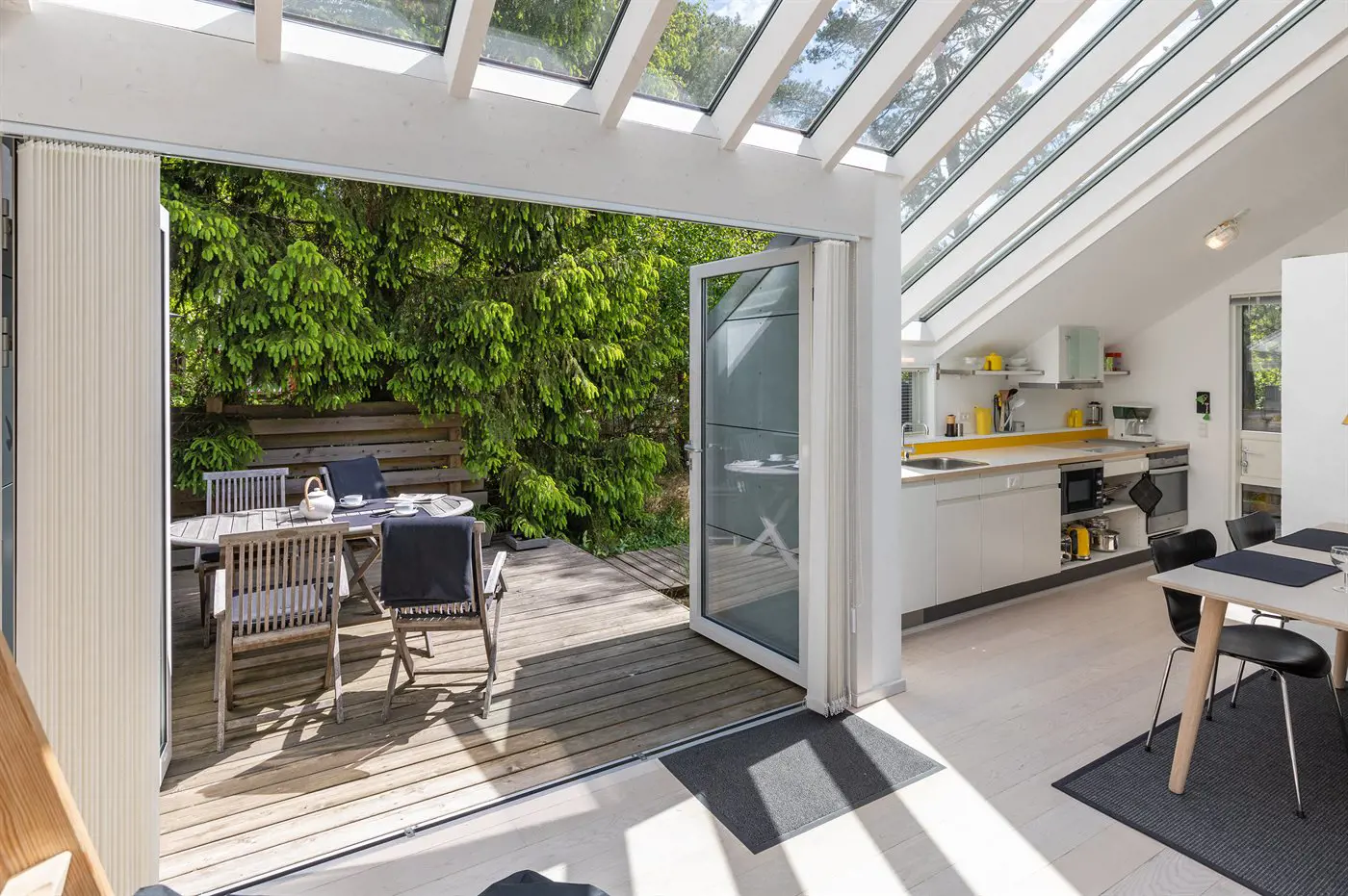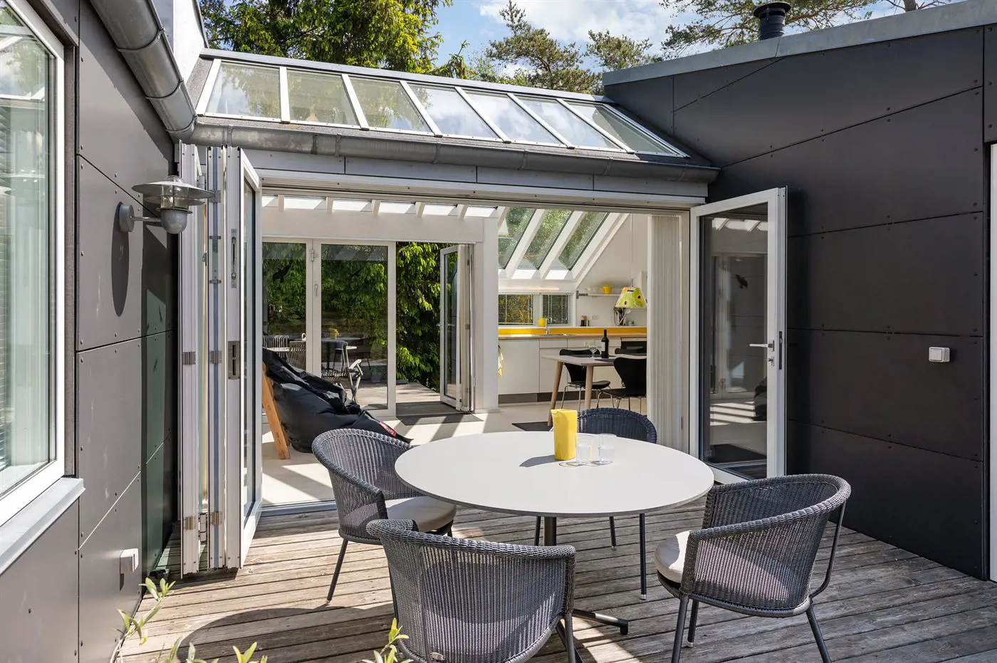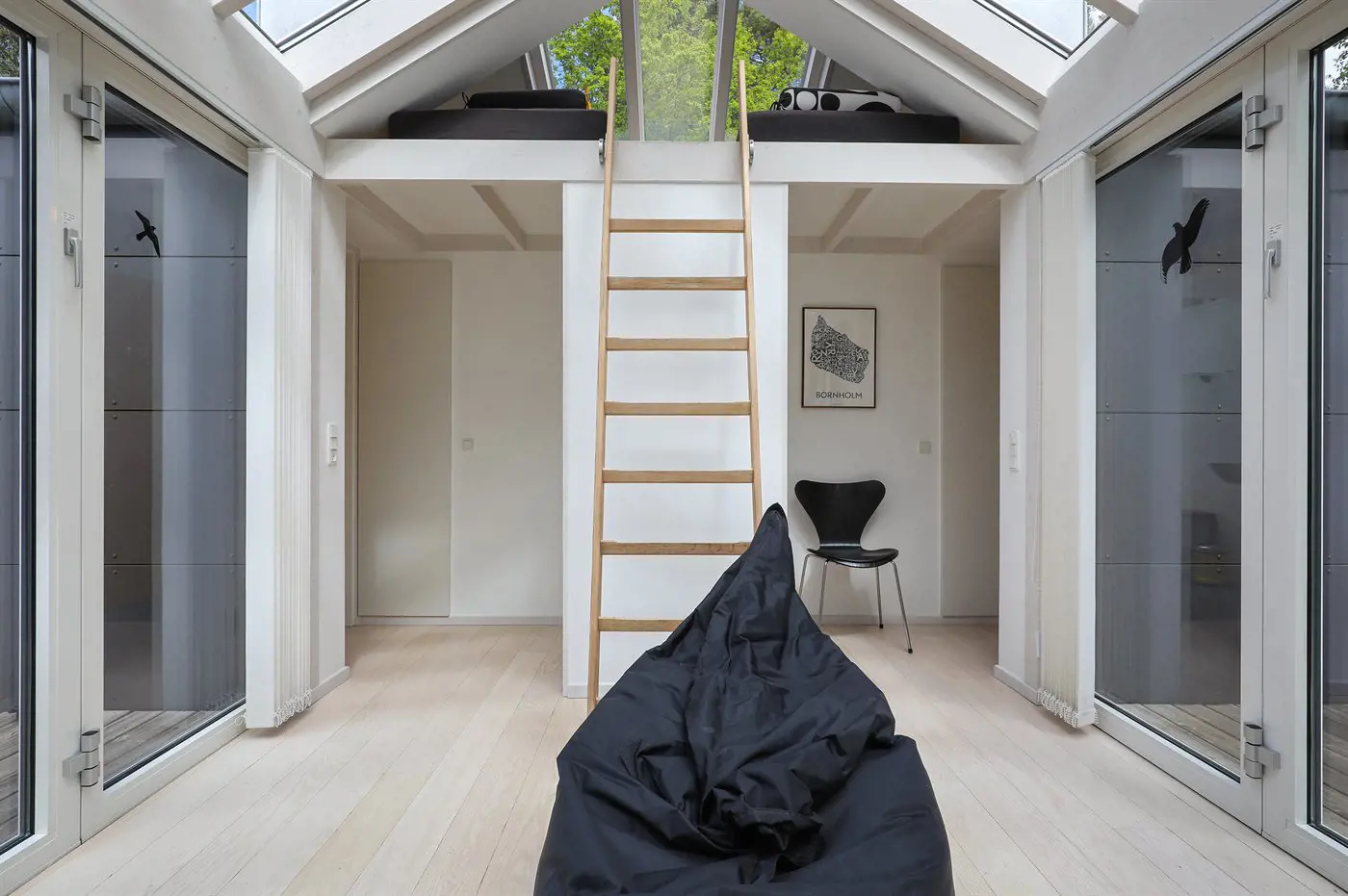 Ein besonders gut gelegenes und gut eingerichtetes Ferienhaus, 2007 gebaut, von Holzterrassen mit Gartenmöbeln umgeben. Die nach Osten und Westen gerichteten Fensterfronten lassen das Haus hell und freundlich erscheinen. Innen gibt es helle Holzböden, Gipsdecken sowie weißgestrichene Wände. Die großen Glastüren können alle geöffnet werden. Das Ferienhaus liegt nur 150 m vom hübschen und sehr kinderfreundlichen Balka Strand entfernt. Badezimmer mit Duschnische, Whirlpool, Fußbodenheizung, Waschmaschine und Wäschetrockner. Die Küche ist u. a. mit Tiefkühlgerät, Herd mit Ceran-Feld, Umluftofen, Mikrowelle und Geschirrspüler ausgestattet. Das Wohnzimmer ist mit Kaminofen, TV mit digitalem Satellitenanschluss, DVD-Spieler, CD-Spieler sowie kostenloser, kabelloser Internetverbindung (eigener Computer muss mitgebracht werden) eingerichtet. Das Wohn-/Esszimmer verbindet die Küchenabteilung mit der Bade- und Schlafabteilung. Die 2 Schlafzimmer des Hauses sind beide mit Doppelbett ausgestattet. Die Betten können jedoch nach Bedarf auseinander geschoben werden. Helles und geräumiges, offenes Obergeschoss mit 2 Schlafplätzen.Es ist eine energiesparende Wärmepumpe installiert. Für die jüngsten Feriengäste gibt es 2 Schaukeln sowie Sandkasten auf dem Grundstück. Das Gebiet Balka ist durch einen kinderfreundlichen, weißen Sandstrand mit verschiedenen Aktivitätsmöglichkeiten (u. a. Minigolf) gekennzeichnet. Von anderen Aktivitätsmöglichkeiten auf Balka können Fahrradvermietung, Restaurants und Keramikgeschäft erwähnt werden. Snogebæk liegt nur 500 m vom Haus entfernt. In Snogebæk gibt es u. a. Schokoladenfabrik, ökologischen Eisverkauf, einige anderen Sommergeschäfte sowie den Inselhafen. Auf der Insel gibt es ferner den 18-Loch Golfplatz Dueodde Golfbane sowie drei andere Golfplätze.
