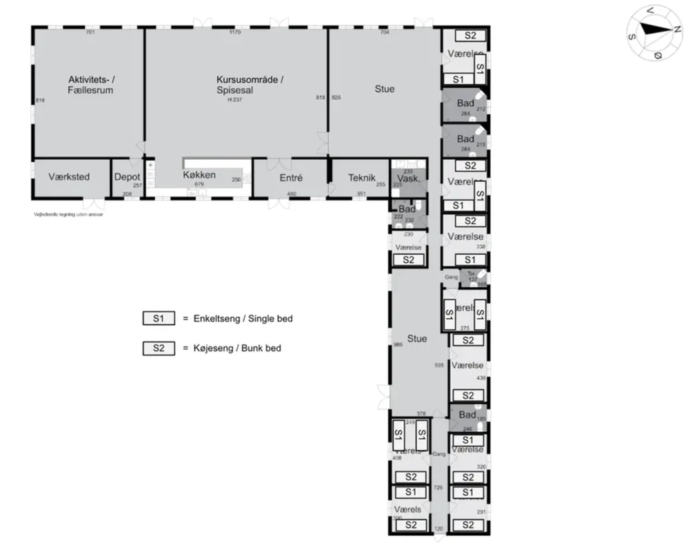 Die Unterkunft bietet gute Einrichtungen für größere Gruppen. Der Speise- und Kursbereich bietet Platz für bis zu 50 Personen. Es gibt Übernachtungsmöglichkeiten für bis zu 40 Gäste mit 32 Betten sowie zusätzlichen Matratzen.