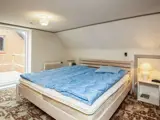 Ein größeres Schlafzimmer im Haus mit Doppelbett und Schrankplatz, die beiden anderen mit jeweils zwei Einzelbetten. Oben im Dachgeschoss liegen zwei weitere Schlafzimmer; eines mit Doppelbett, das zweite mit einem Einzelbett und einer Schlafcouch. Außerdem großer Aufenthaltsbereich oben mit Sitzecke und TV mit Chromecast.