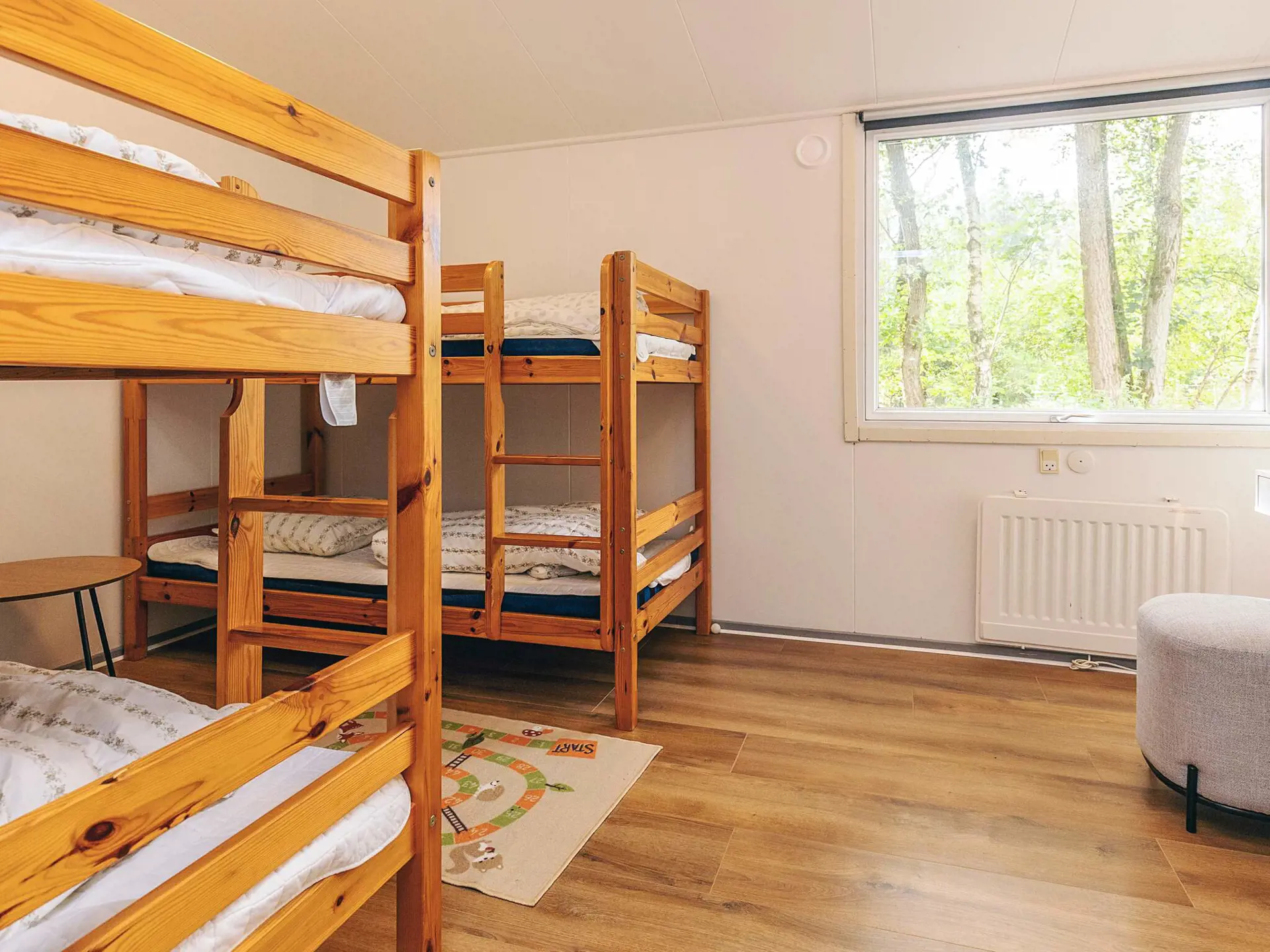 verfügt über Etagenbetten mit Platz für vier Personen.