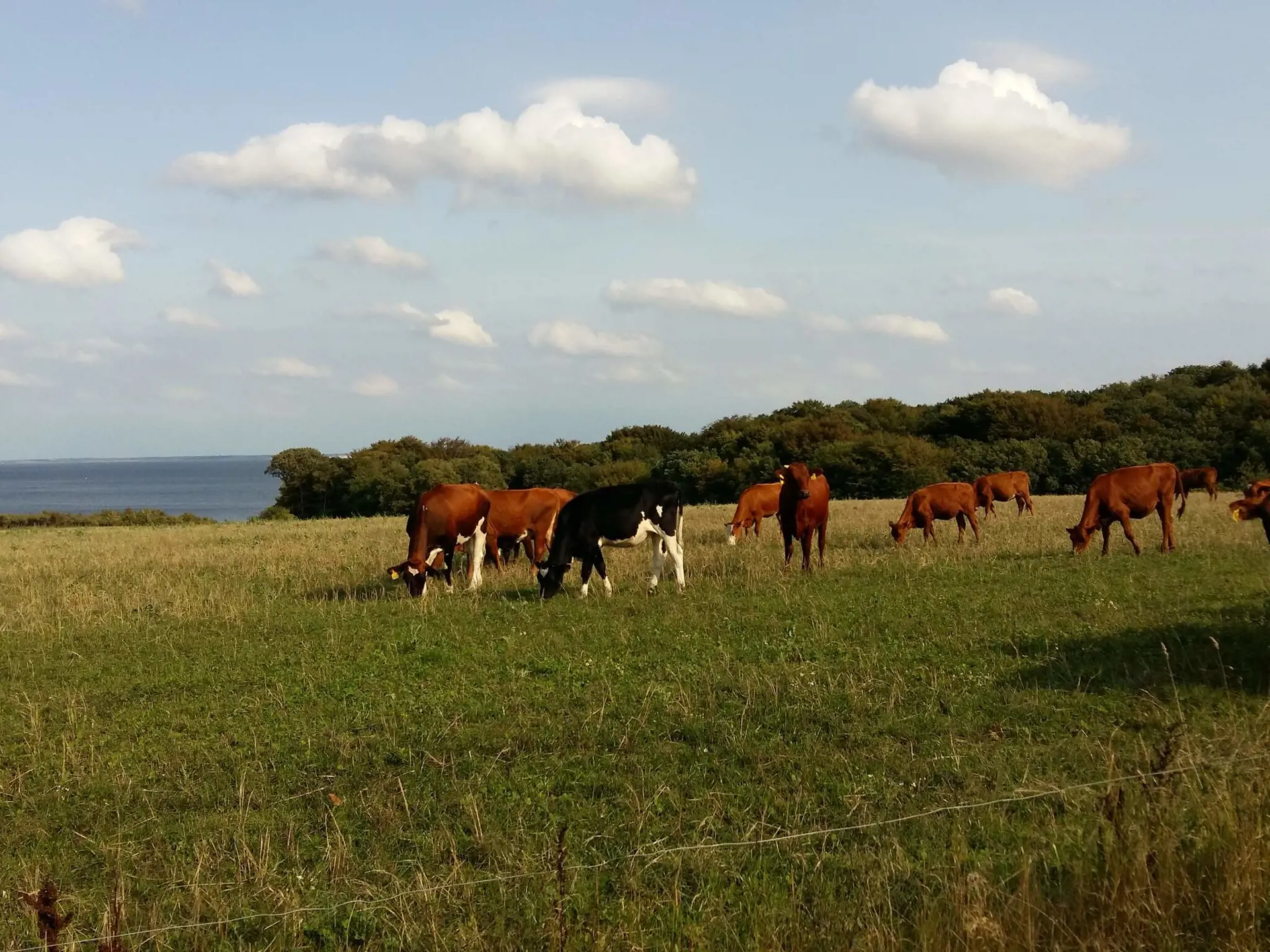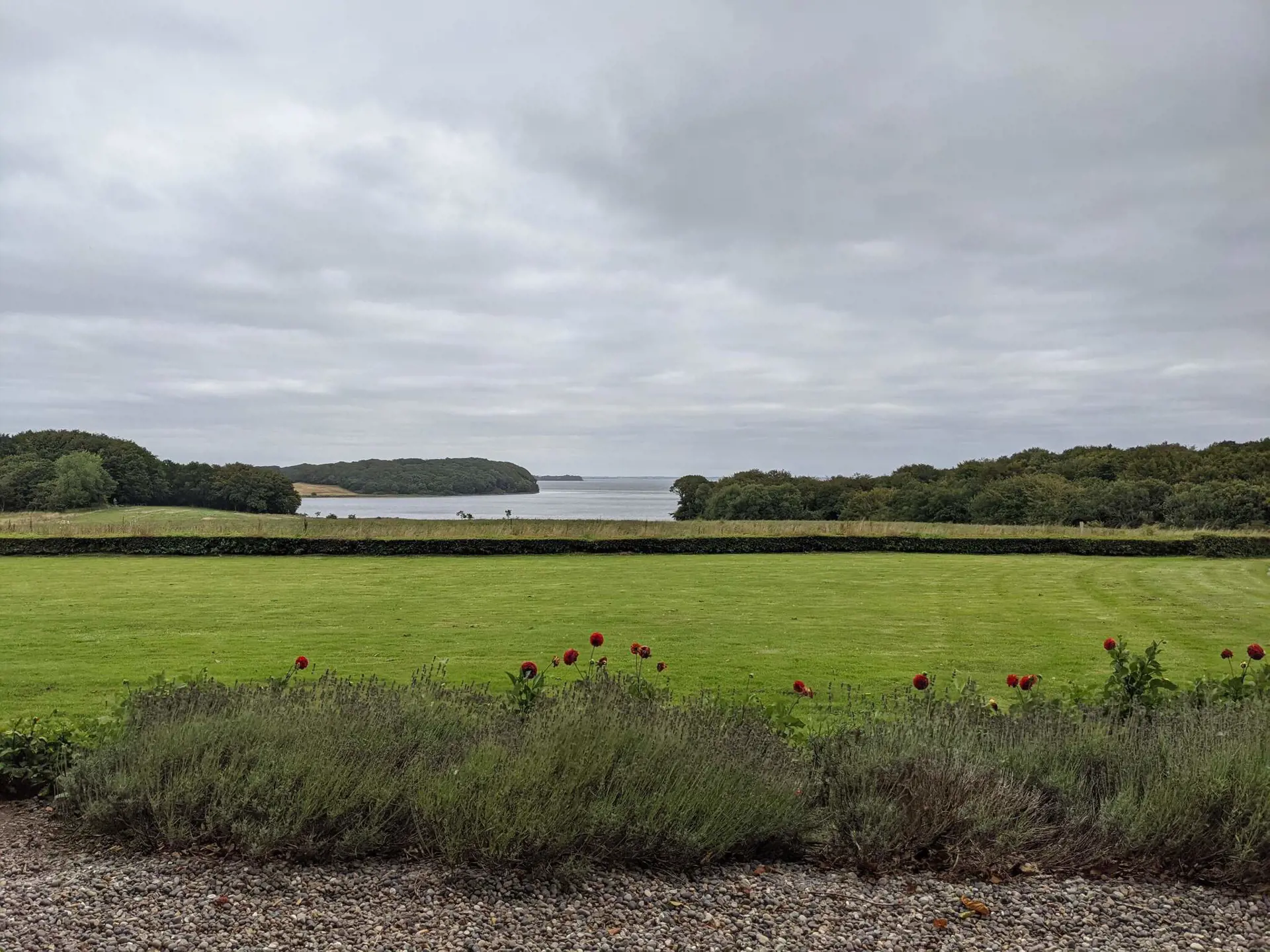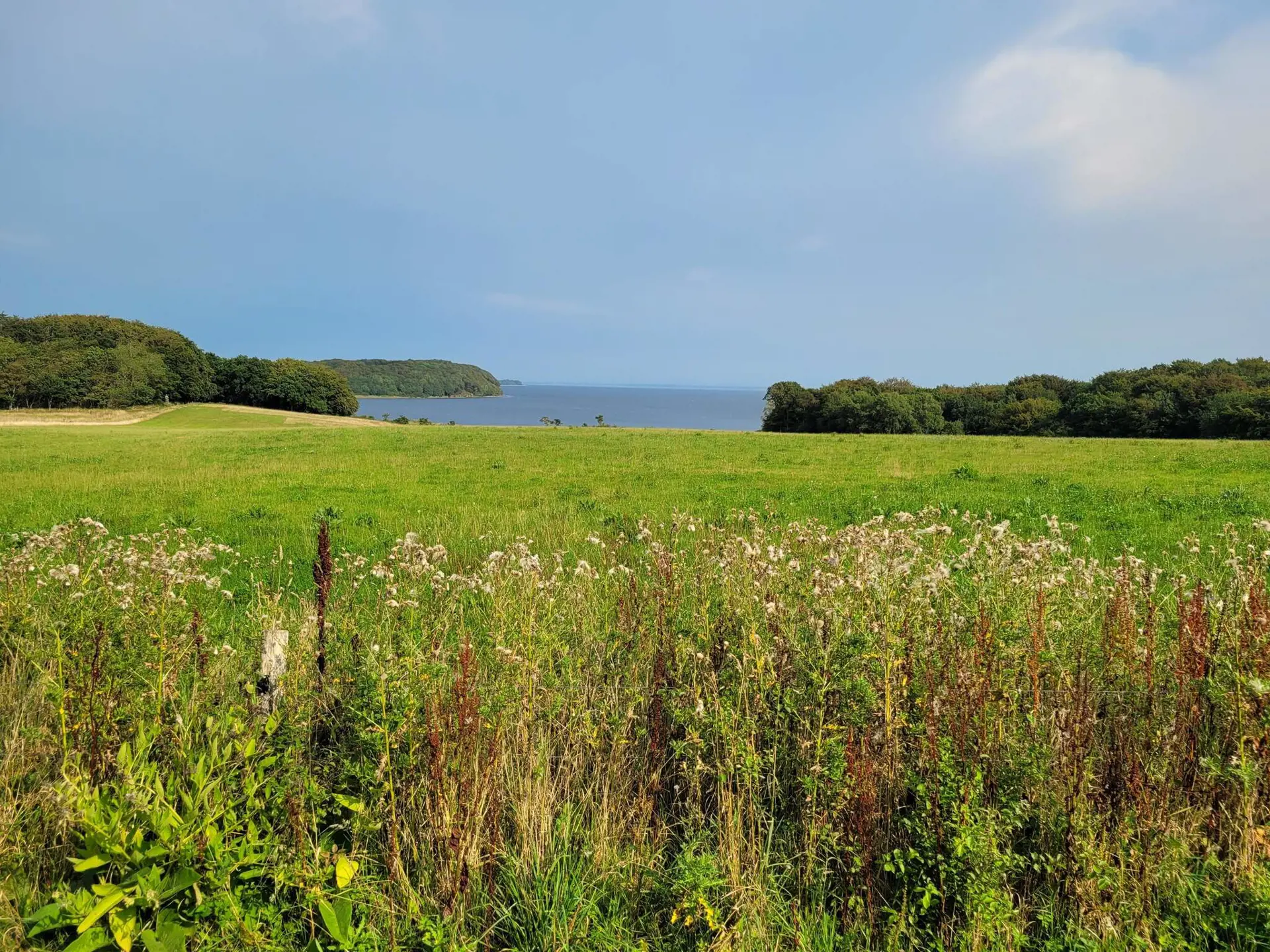 Sie wohnen hier auf einem weitläufigen Naturgrundstück mit Ausblick zum nahen Limfjord. Mehrere Holzterrassen im Außenbereich, eine davon teilweise überdacht.
