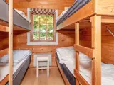 Vom Wohnzimmer aus hat man Zugang zu den beiden Schlafzimmern; eines davon mit Doppelbett und das andere mit zwei Etagenbetten mit vier Kojen. Darüber hinaus gibt es Zugang zu einer schönen Holzterrasse, die teilweise überdacht ist.