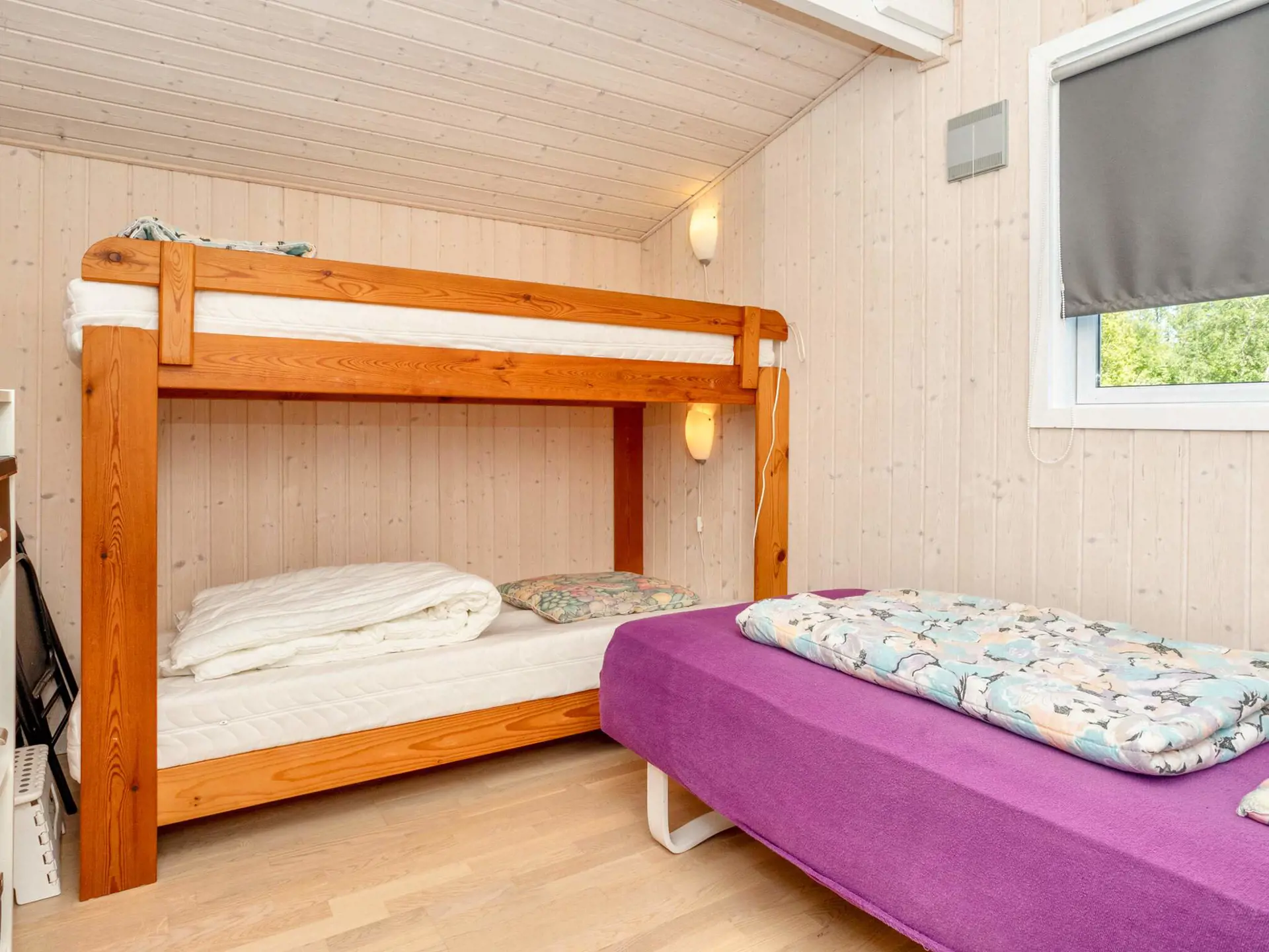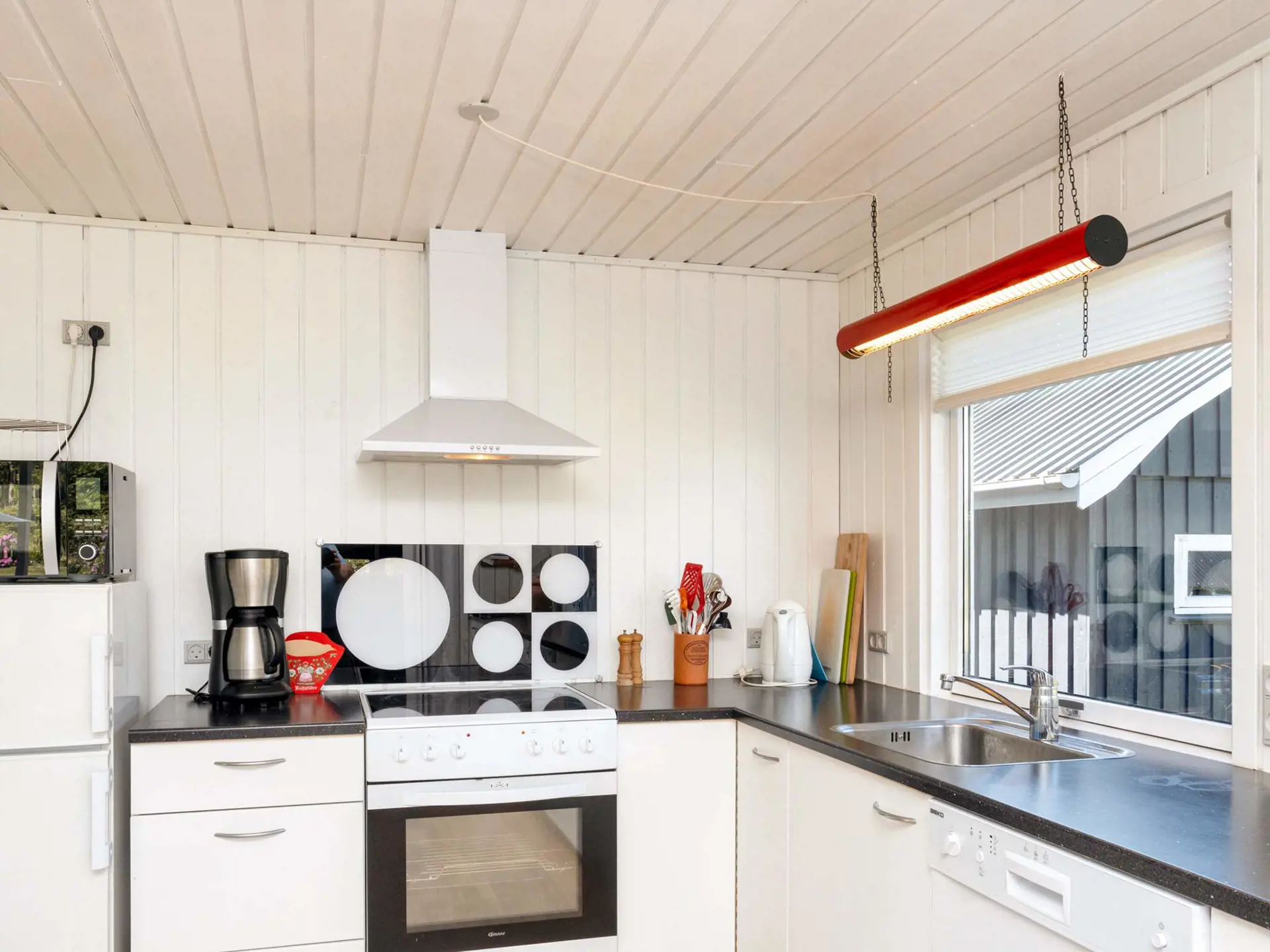 Das Haus hat eine Küche mit u.a. Spülmaschine und ein Wohnzimmer mit WLAN und Chromecast zum Streamen. Zwei Zimmer mit Doppelbett und ein drittes Zimmer mit Etagenbett mit zwei Kojen.