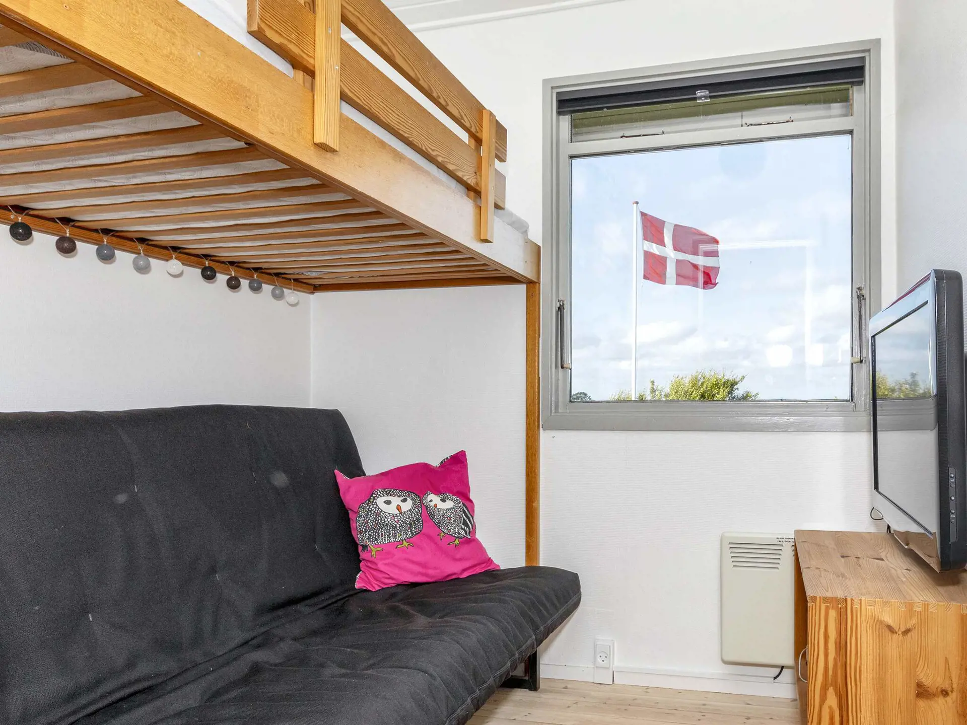 Das Ferienhaus hat drei Schlafzimmer zur Auswahl; 1. Zimmer mit einem Doppelbett (160x200 cm), 2. Zimmer mit Etagenbett mit zwei Kojen (90x200 cm), 3. Zimmer mit Einzelkoje (90x200 cm).