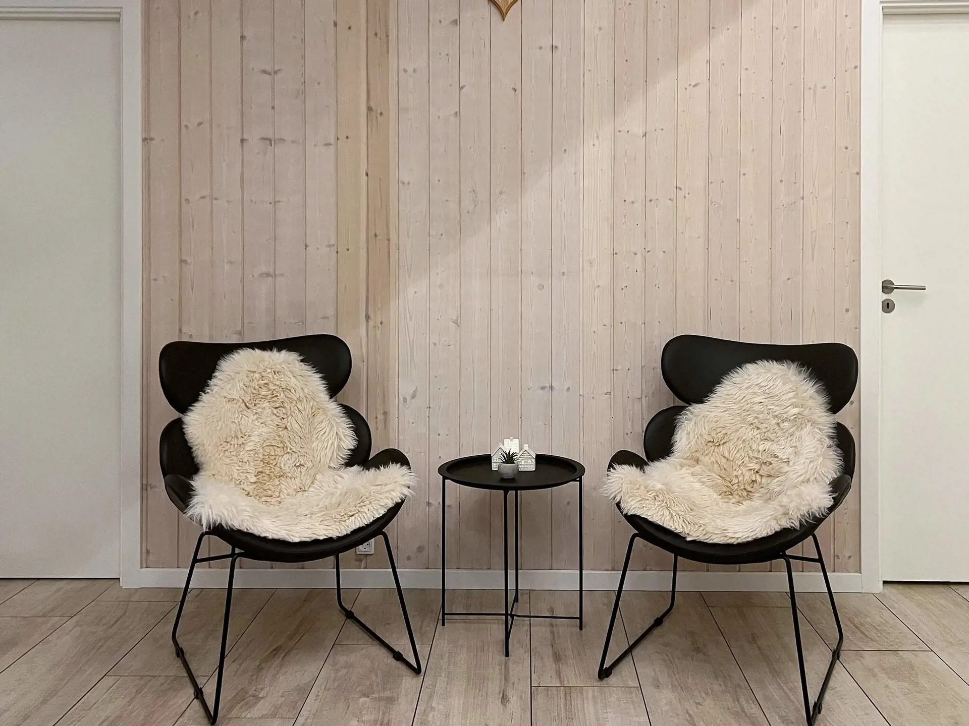 Es hat einen offenen Küchen-/Wohnbereich für das Familienleben sowie vier Schlafzimmer mit jeweils einem Doppelbett und ein Bad mit Dusche/WC. Die Einrichtung ist durchgehend modern und komfortabel gestaltet. Zur Erwärmung stehen eine klimafreundliche Wärmepumpe sowie angenehme Fußbodenheizung zur Verfügung. Zudem zwei Hochstühle, eine Liege sowie Wickeltisch im Haus.