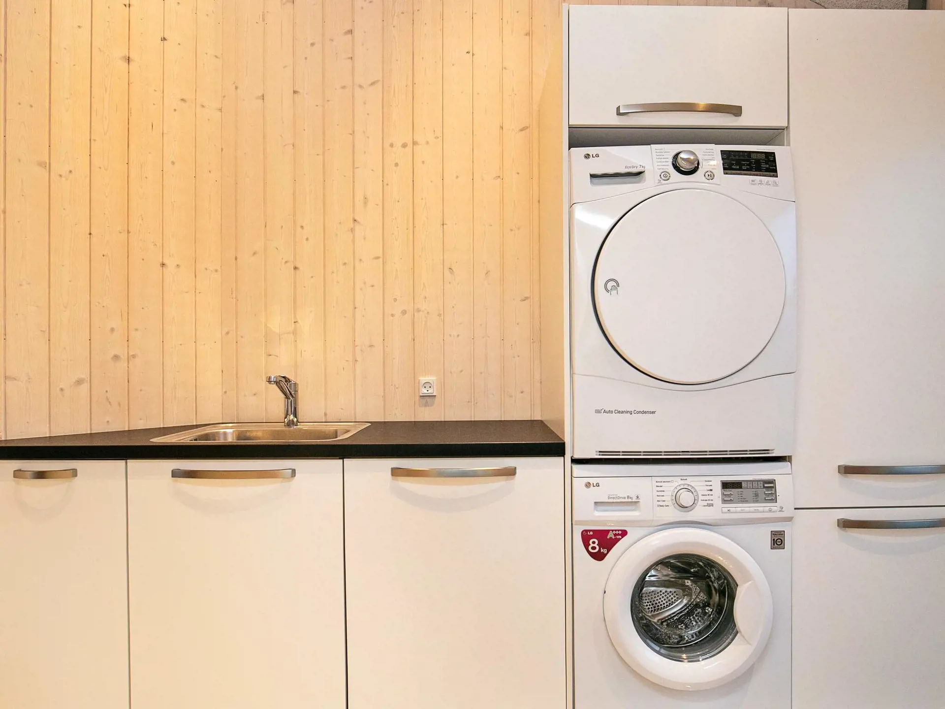 Im Außenbereich erwartet Sie eine insgesamt 50 m² große Terrassenfläche, die sich einmal um das Haus herum erstreckt. So findet man zur jeder Tageszeit ein sonniges oder windgeschütztes Plätzchen im Freien. Der kinderfreundliche Badestrand ist nur ca. 800 m vom Haus entfernt. Dort gibt es auch einen großen Spiel- und Bolzplatz sowie mehrere Shelter zum Übernachten im Freien.
