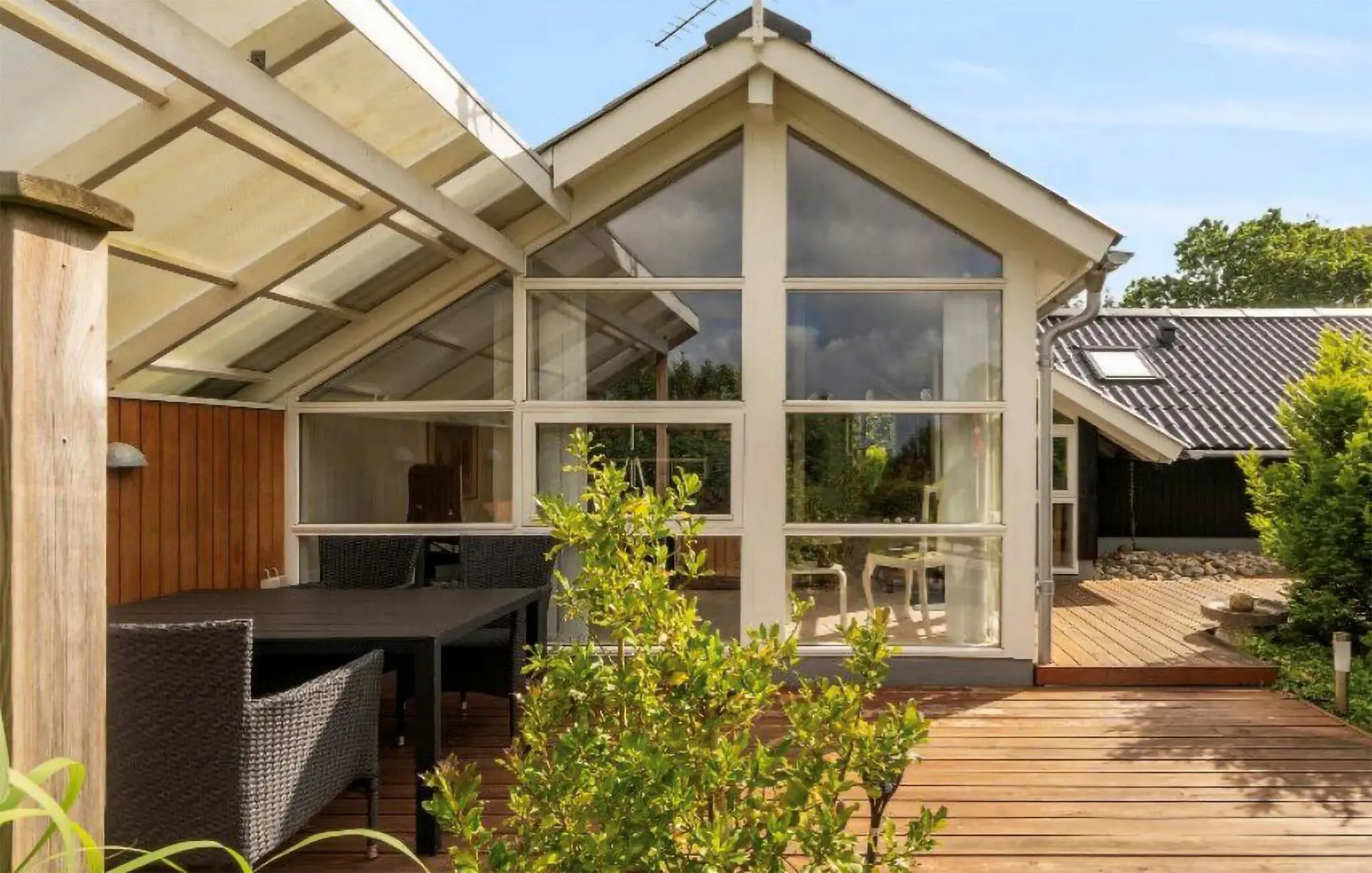 Eine erholsame Auszeit erwartet Sie in diesem Ferienhaus mit gemütlichem Wohnbereich und schöner Holzterrasse.