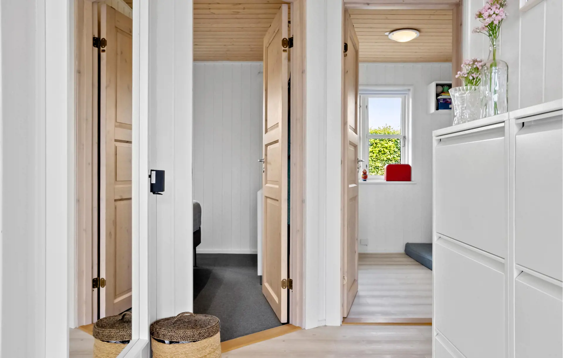 Genießen Sie die ruhige Lage am Eskov Strand und verbringen Sie erholsame Tage inmitten der Küstenlandschaft. Gehen Sie direkt zum Strand und baden Sie im klaren Wasser des Limfjords, spazieren Sie entlang der Küste und lassen Sie den Blick über das flache Meer und die weiten Ufer schweifen. Nutzen Sie die guten Bedingungen zum Angeln, Kajakfahren oder Stand-up-Paddling und erleben Sie die Natur aus nächster Nähe. Erkunden Sie die Umgebung auf gut ausgebauten Rad- und Wanderwegen und entdecken Sie kleine Buchten, Wiesen und Wälder. Unternehmen Sie Ausflüge zu historischen Sehenswürdigkeiten und Museen in der Region oder beobachten Sie Vögel und andere Tiere in den geschützten Naturgebieten rund um den Fjord.