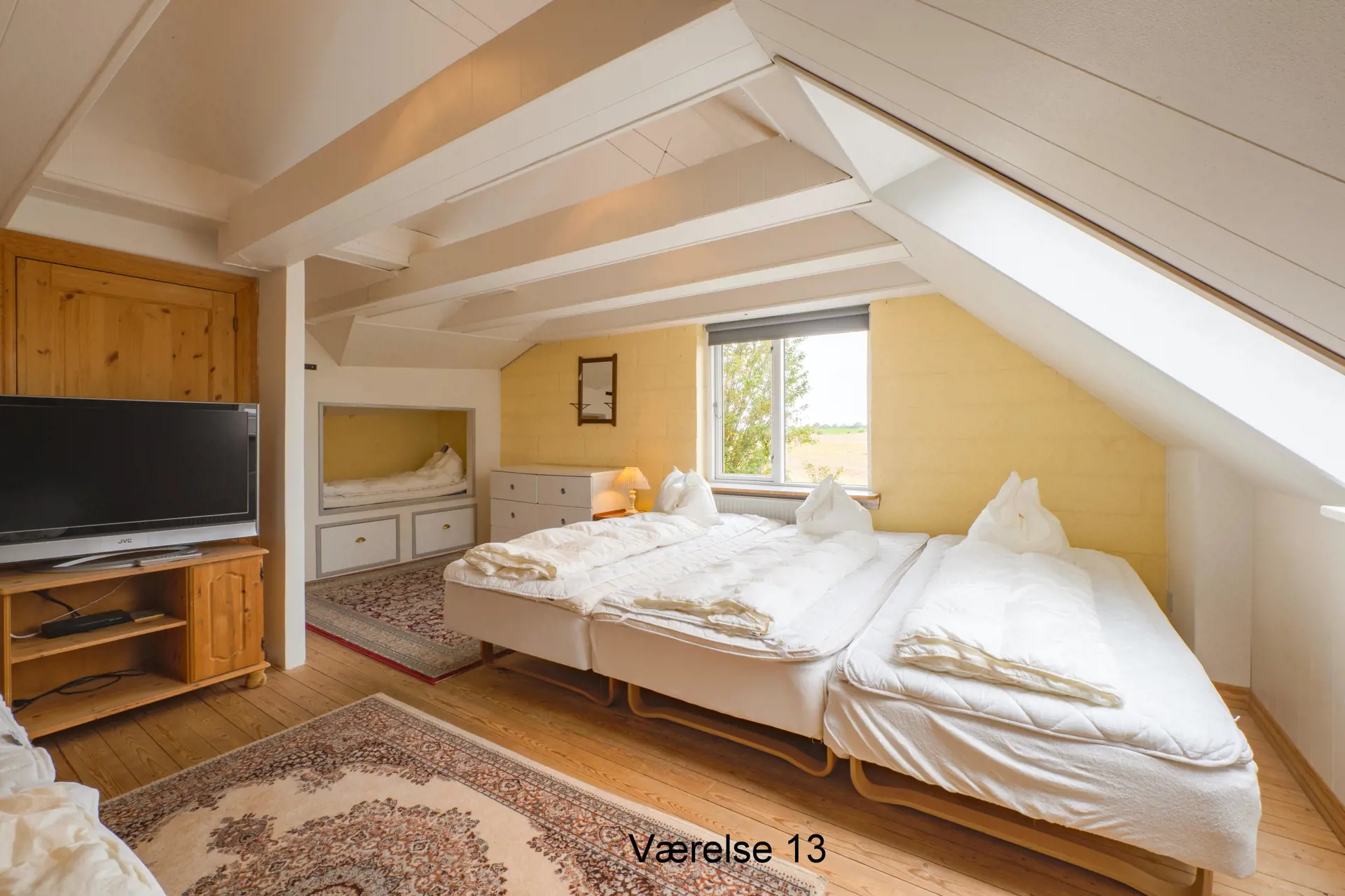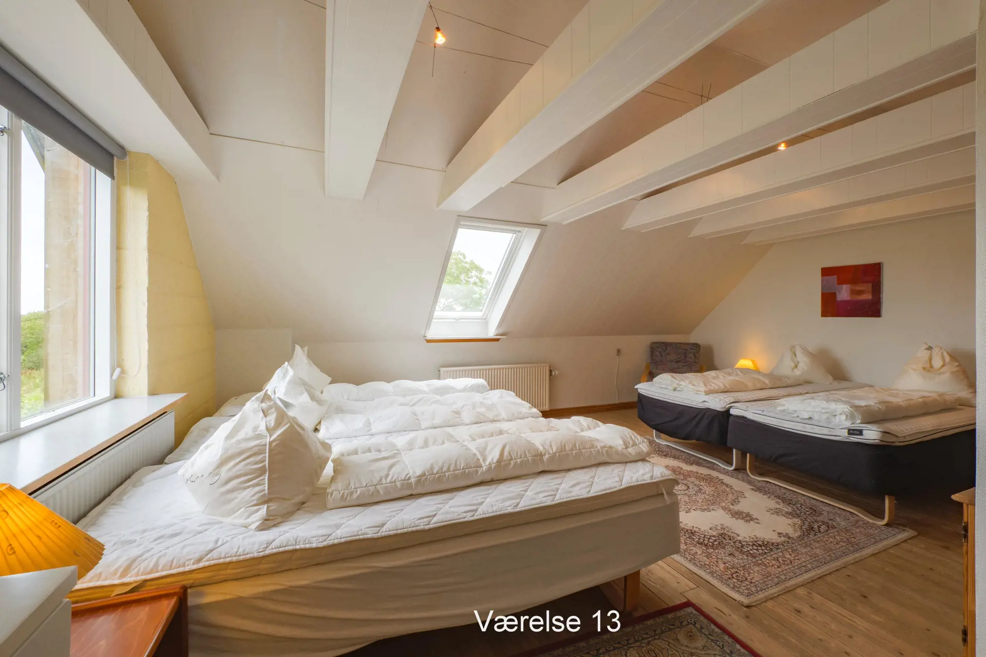 Großes, geräumiges Ferienhaus mit Aussicht auf den Limfjord und die attraktive, ländliche Umgebung. Bereits nach einem kurzen Spaziergang befinden Sie sich inmitten schöner, sattgrüner Natur. Das Urlaubsdomizil beherbergt bis zu 41 Personen. Es ist funktional eingerichtet und bietet ausreichend Bewegungsfreiheit für diverse unterschiedliche Aktivitäten im Innen- und Außenbereich. Die Küche empfängt Sie ebenfalls mit einer praktischen Einrichtung. Geschirr, Küchenutensilien, Kühlschränke, ein Geschirrspüler und ähnliche Dinge sind vorhanden. Zusätzlich zum Wohnraum und zum Esszimmer, steht Ihnen in diesem Objekt auch ein Aktivitätsraum mit einem Tischkicker und einer Play-Station samt diversen Spielen zur Verfügung. Unter freiem Himmel, nahe dem Hauptgebäude, locken vielfältige Aktivitätsangebote, beispielsweise in Form einer schwedischen Badetonne und einer Sauna. Das funktional eingerichtete Haus ist an die Bedürfnisse einer großen Gruppe angepasst. Dabei wurden sowohl die Bedürfnisse Erwachsener als auch die der Kinder berücksichtigt. Die Umgebung lädt zu schönen Spaziergängen ein. Dieses gepflegte Anwesen eignet sich sehr schön für große Familien oder Gruppen, die einen aktiven Urlaub verbringen möchten. Selbstverständlich kommt jedoch auch die Entspannung nicht zu kurz.