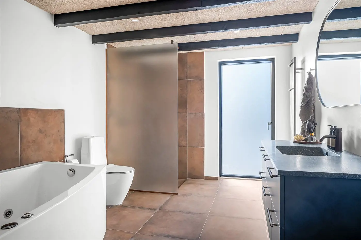 Es gibt 2 Badezimmer mit Duschnische und 2 Toiletten. Fußbodenheizung in 1 Badezimmer. Es steht eine Sauna zur Verfügung in der Sie sich so richtig entspannen können.