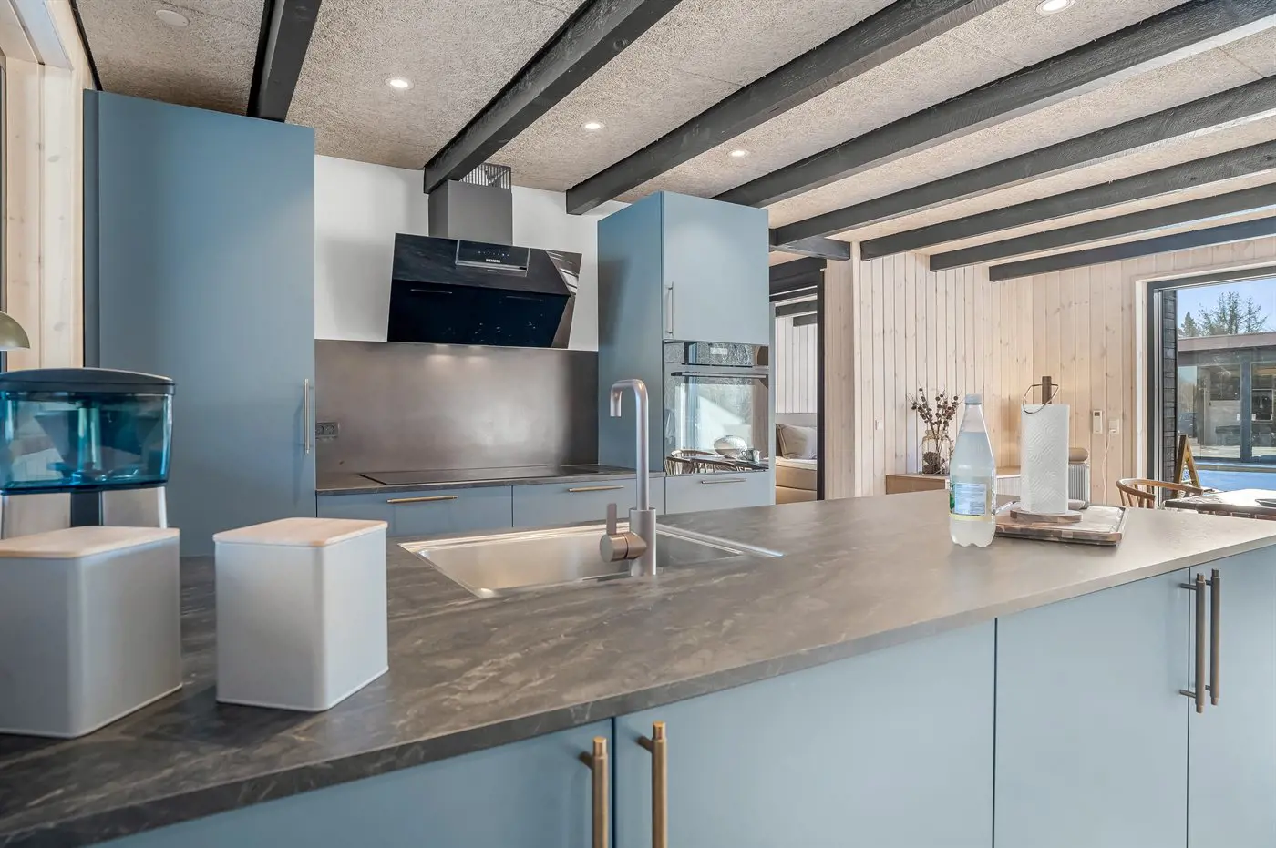 Die Küche ist mit Kühlschrank ausgestattet. Außerdem gibt es 4 Induktions-Kochzonen, Umluftofen, Mikrowelle sowie Geschirrspüler.