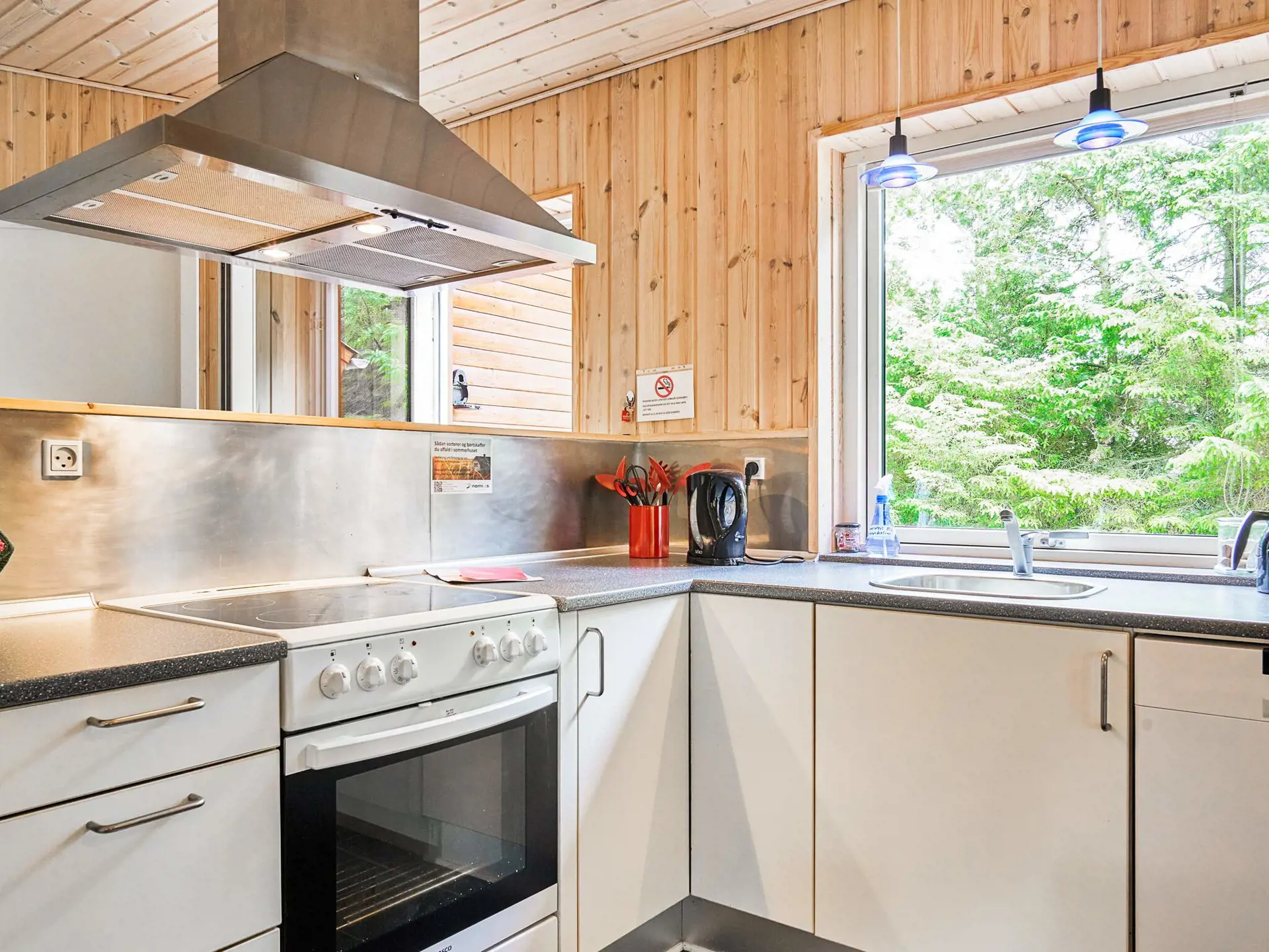 Hell und wohnlich eingerichtetes Ferienhaus mit Whirlpool im Bad. Steht auf einem geschützten Rasengrundstück mit Bäumen ringsum, in einem ruhigen Ferienhausgebiet nahe des Limfjordes. Vom Haus sind es nur ca. 200 m zum Wasser.