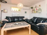 Ferienhaus bei Toftum Bjerge. Im Wohnzimmer freies WLAN und gemütliche Einrichtung. Küche mit u.a. Geschirrspüler. Zwei Schlafzimmer mit Doppelbett und ein Zimmer mit Etagenbett mit zwei Kojen. Die klimafreundliche Wärmepumpe sorgt für angenehme Wärme im Haus. Terrasse rund um das Haus. Dusche direkt vor der Haustür. Pool und Darts im Haus.