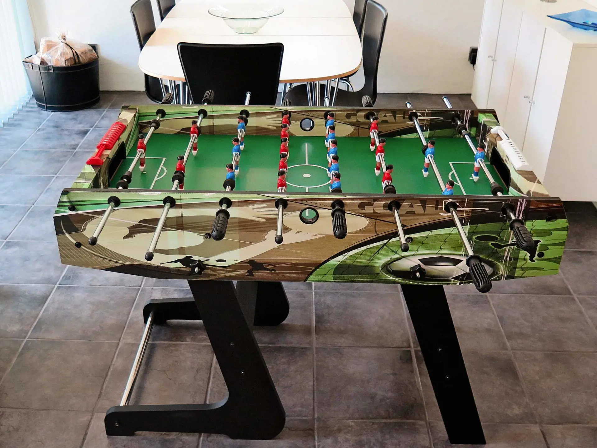 Im Außenbereich steht eine 100 m² große Terrassenfläche mit guten Gartenmöbeln für Sonnentage und Grillabende bereit. Gasgrill vorhanden. Außerdem Aktivitäten für die ganze Familie, bei denen es Gelegenheit für viele schöne gemeinsame Stunden gibt. Im Innenbereich gibt es für den Freizeitspaß Tischkicker, elektronisches Darts und PlayStation 3 inkl. Spiel. Im Freien gibt es Fußballtor und einen Sandkasten für die Kleinen. Außerdem eine schöne Feuerstelle mit Bänken für ein Lagerfeuer. Ab Juni bis August stehen zudem am Haus zwei Stand Up Paddleboard (SUP) bereit, die nur auf eigenes Risiko genutzt werden können. Bitte behandeln Sie diese, als seien sie Ihr Eigentum!
