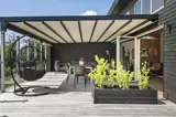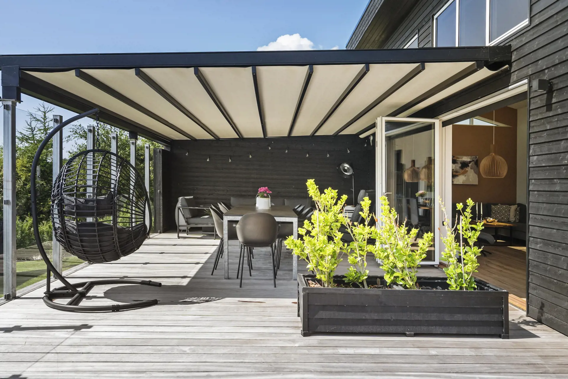 Bei Bedarf sorgt eine elektrische Markise für angenehmen Schatten.