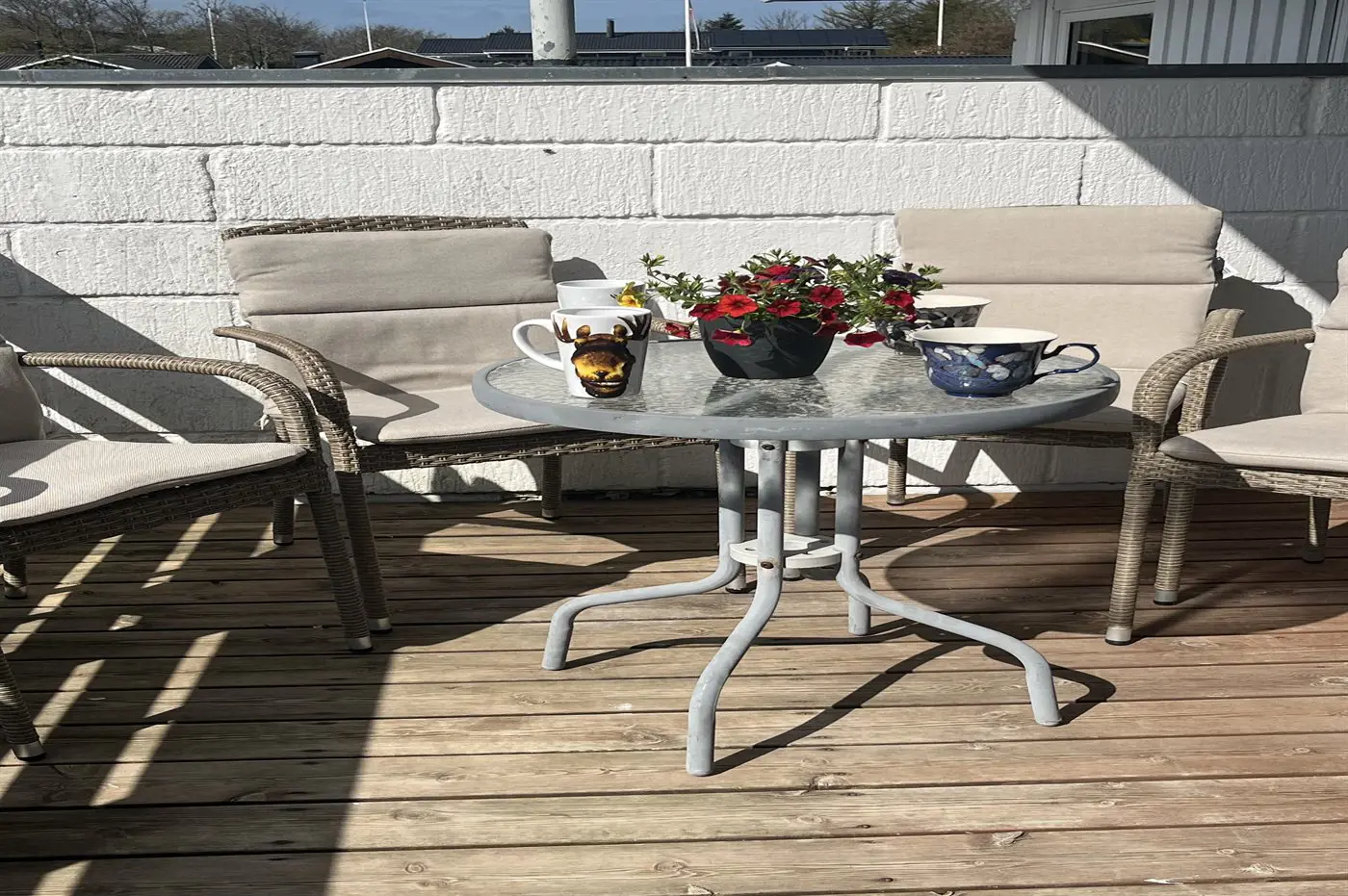 Die Ferienunterkunft liegt auf einem 1002 m² großen Naturgrundstück. Die Entfernung zum Fjord beträgt 500 m. Die nächste Einkaufsmöglichkeit liegt 750 m entfernt. In einem Abstand von 500 m gibt es einen Golfplatz. Es steht ein offenes Terrassenareal zur Verfügung. Außerdem gibt es überdachte Terrasse. Außendusche. Parkplatz auf dem Grundstück.