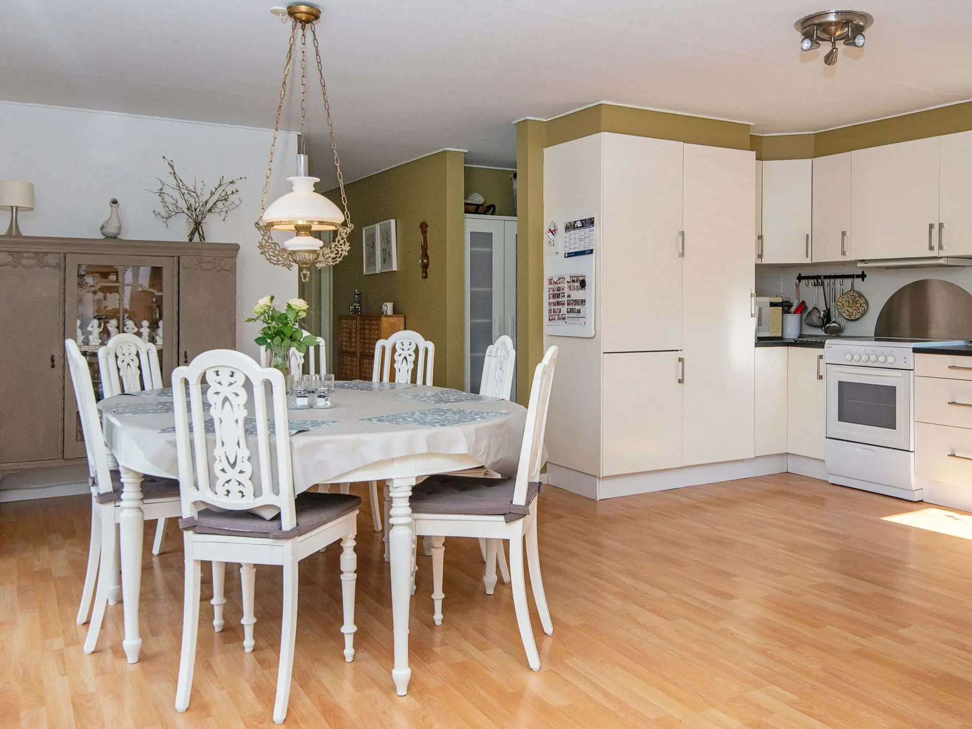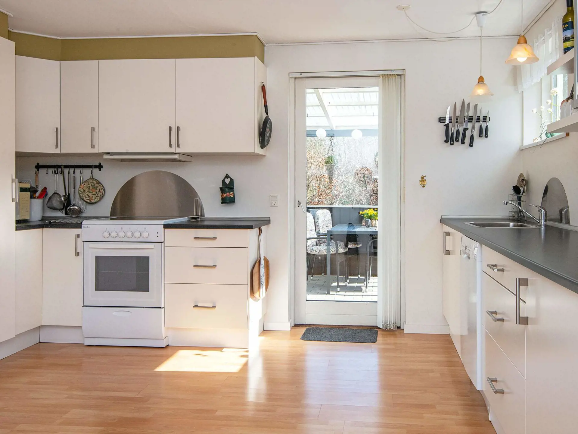 Es erwartet Sie ein Eingangsbereich mit direktem Zugang zum offenen, geräumigen Küchen-/Wohnbereich für das Familienleben. Dort erwarten Sie ein Holzofen für kühlere Tage sowie eine luftige Raumhöhe und eine gute Ausstattung. Zudem stehen drei Schlafzimmer und ein großes Badezimmer mit Dusche und Waschmaschine zur Verfügung. Zur technischen Ausstattung gehören auch TV und WLAN.